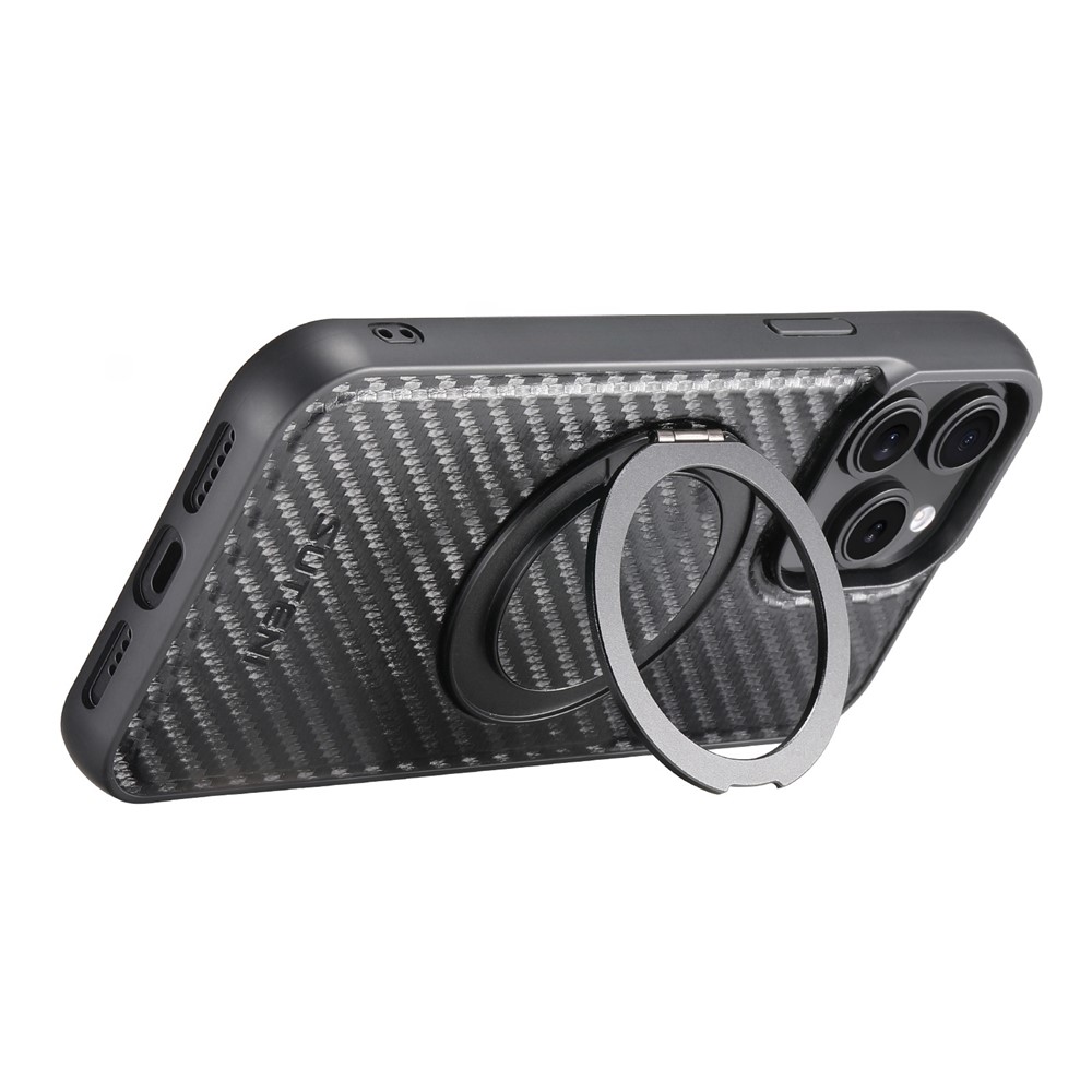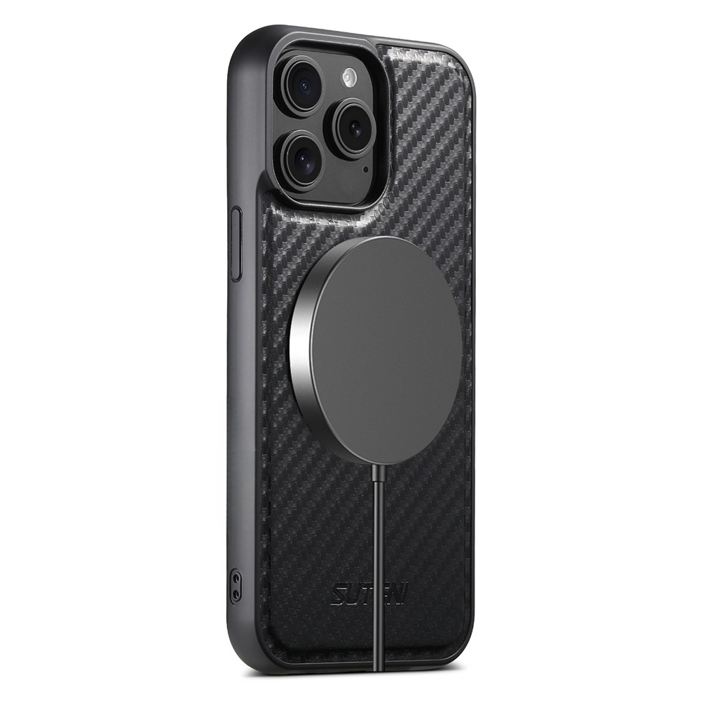 SUTENI G3 For iPhone 12 / 12 Pro Magnetic Case Rotating Kickstand Carbon Fiber Texture Leather Phone Back Cover