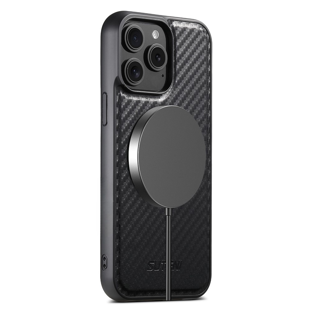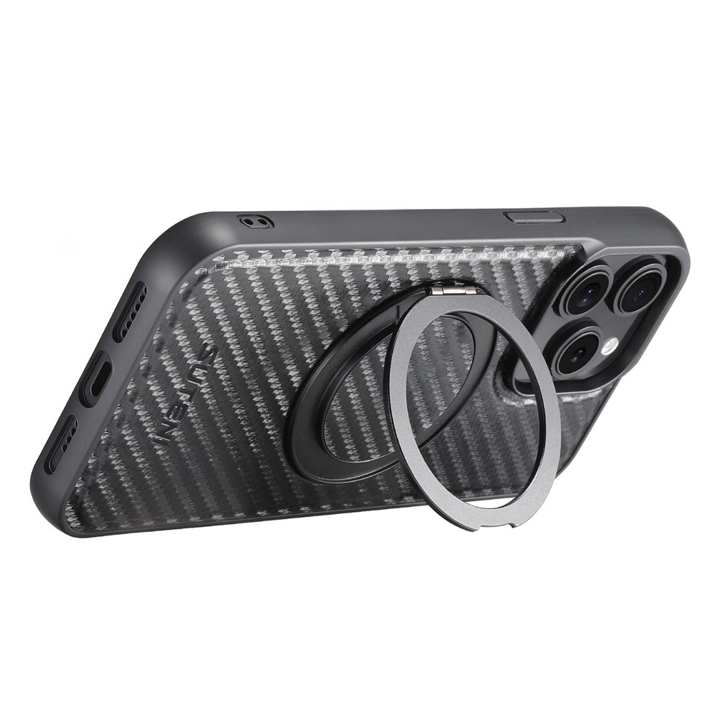 SUTENI G3 For iPhone 13 Pro Magnetic Case Rotating Kickstand Carbon Fiber Texture Leather Phone Back Cover