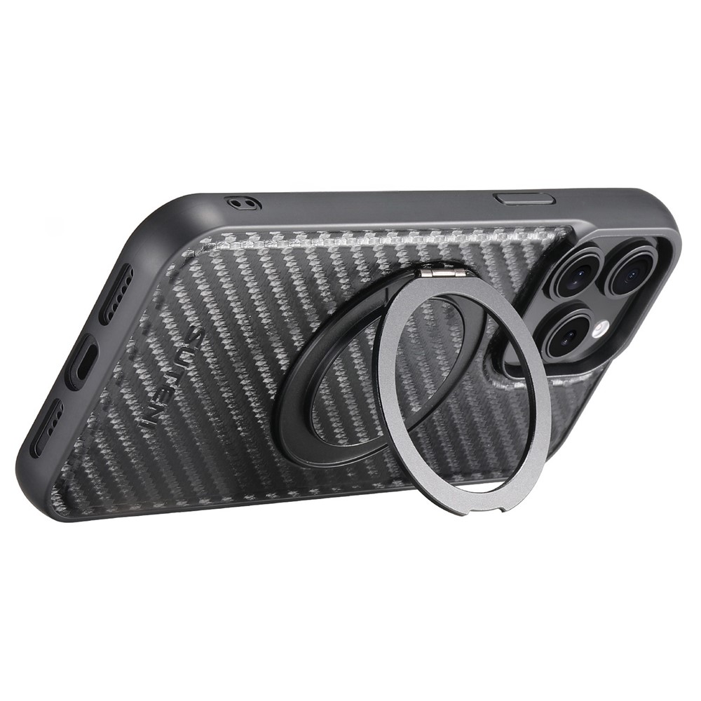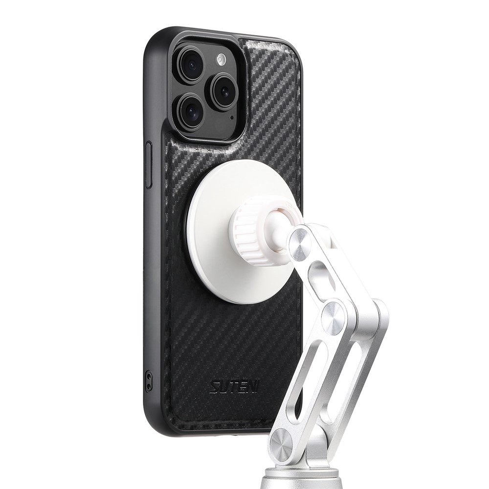 SUTENI G3 For iPhone 13 Pro Max Magnetic Case Rotating Kickstand Carbon Fiber Texture Leather Phone Back Cover