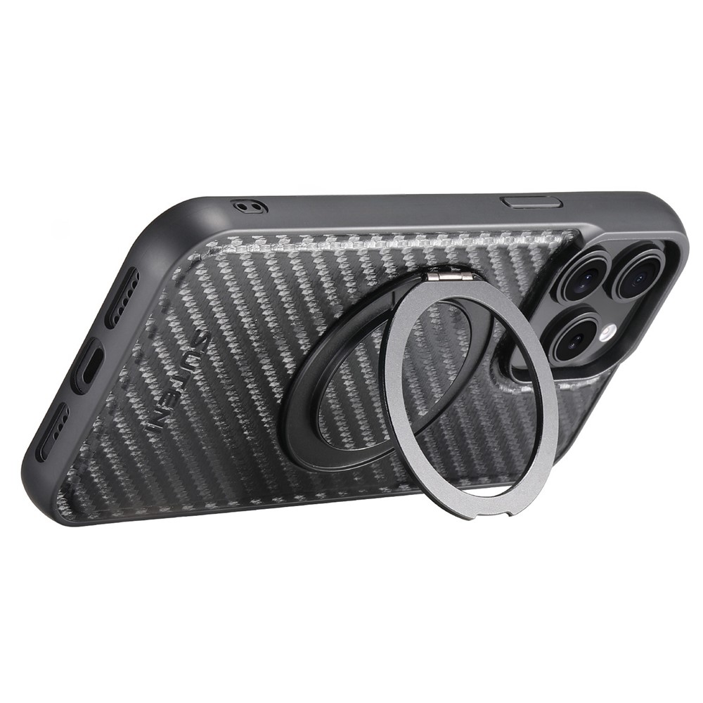 SUTENI G3 For iPhone 14 Pro Max Magnetic Case Rotating Kickstand Carbon Fiber Texture Leather Phone Back Cover