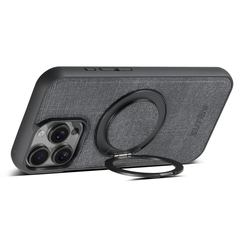 SUTENI G3 For iPhone 14 Pro Max Magnetic Case Rotating Ring Kickstand Jeans Texture PU TPU Phone Back Cover - Black