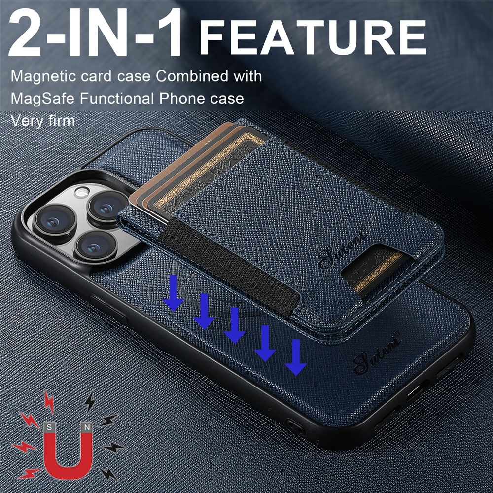• SUTENI H17 For iPhone 13 Pro Max Magnetic Case Cross Texture Leather Phone Back Cover with Detachable Card Bag - Black