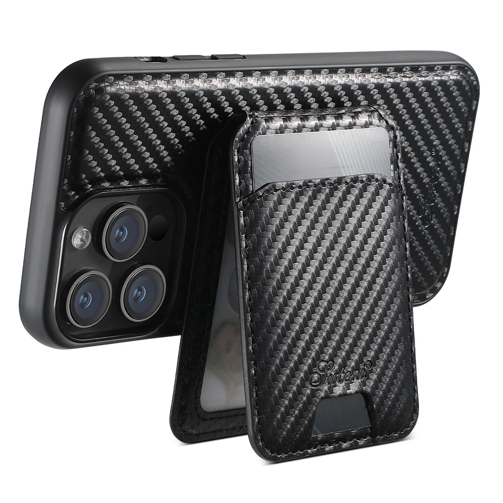 SUTENI H18 For iPhone 13 Pro Max Magnetic Case Carbon Fiber Texture Leather+TPU Cover with Detachable Card Bag
