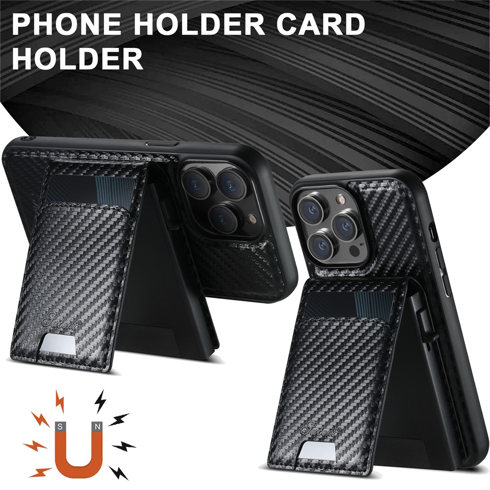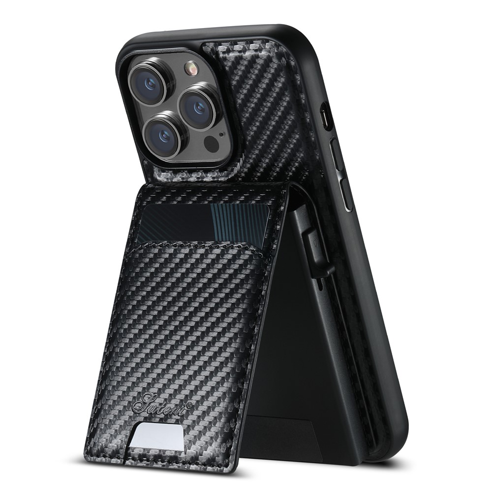 SUTENI H19 For iPhone 14 Pro Magnetic Case Carbon Fiber Texture Leather Back Cover with Card Bag
