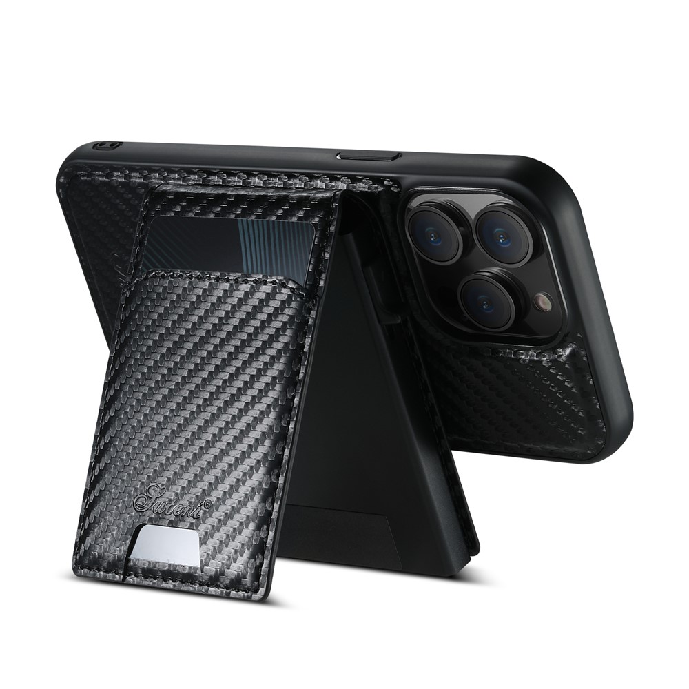 SUTENI H19 For iPhone 15 Pro Max Magnetic Case Carbon Fiber Texture Leather Back Cover with Card Bag