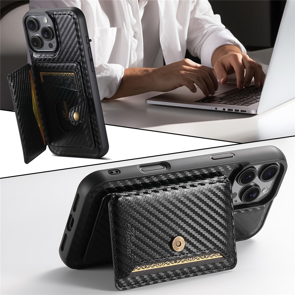 SUTENI H20 For iPhone 13 Pro Magnetic Case Carbon Fiber Texture Phone Back Cover with Detachable Card Holder
