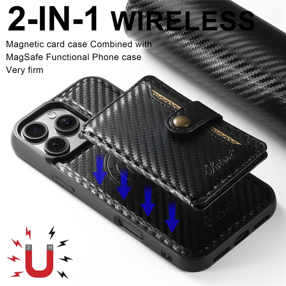 SUTENI H20 For iPhone 13 Pro Max Magnetic Case Carbon Fiber Texture Phone Back Cover with Detachable Card Holder