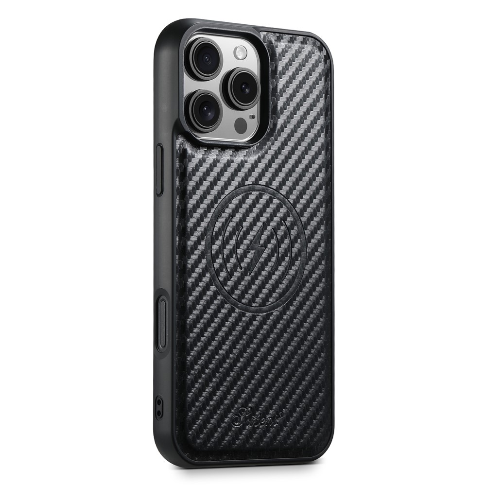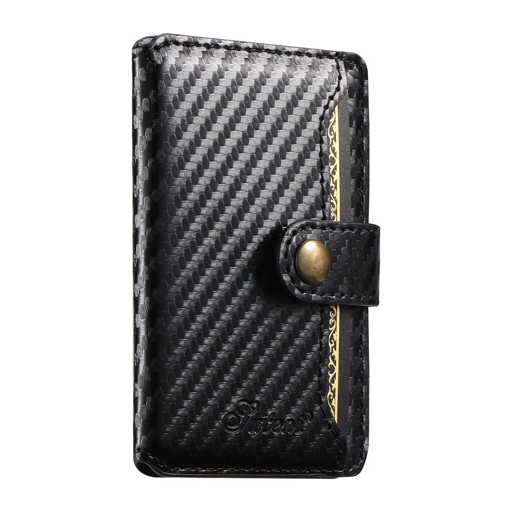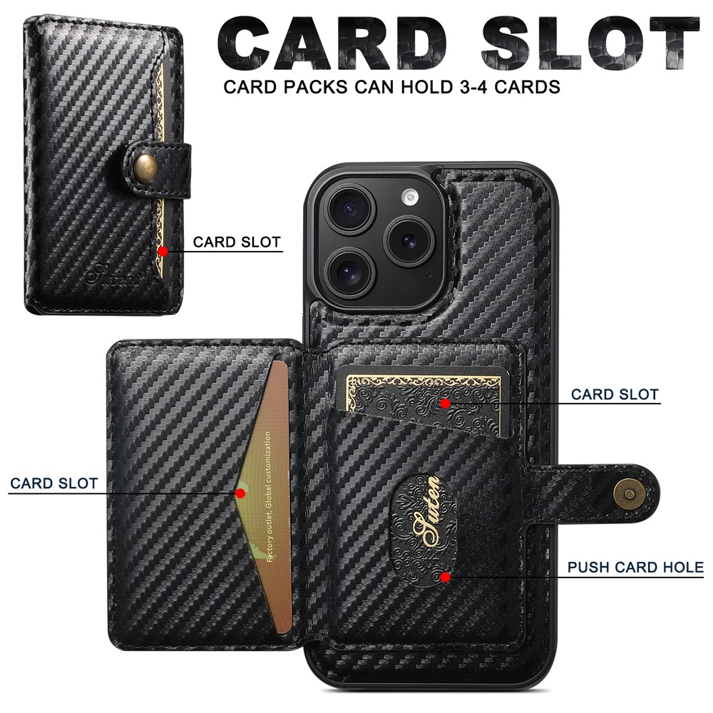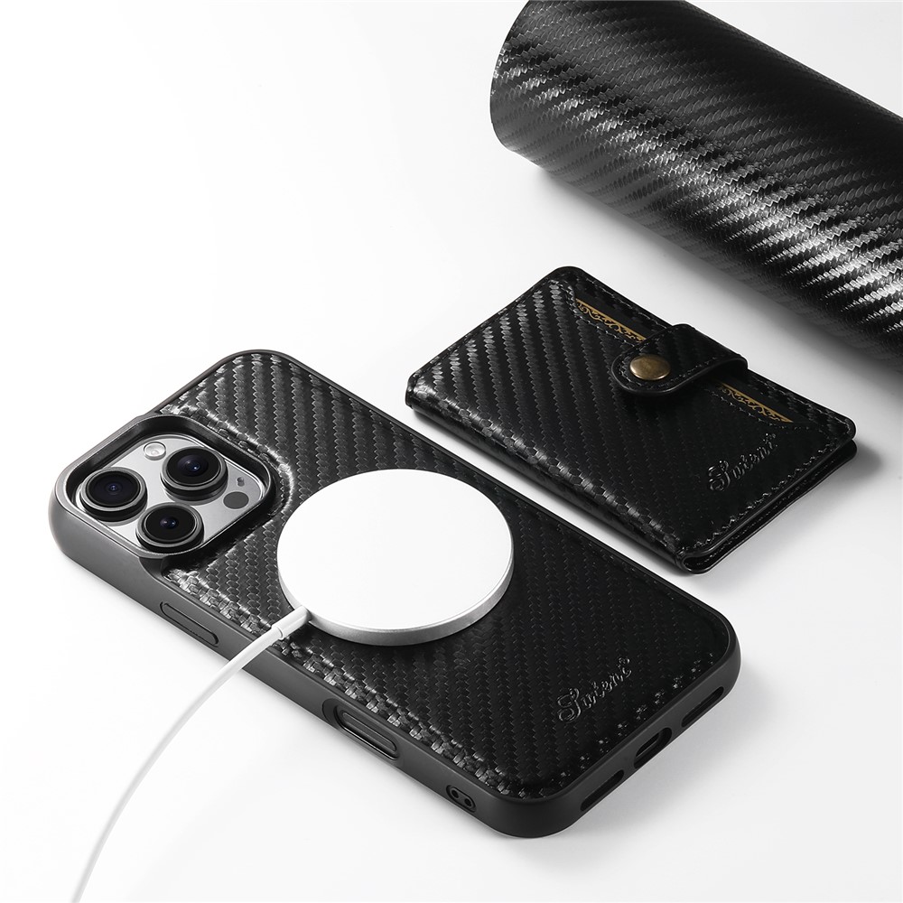SUTENI H20 For iPhone 14 Pro Max Magnetic Case Carbon Fiber Texture Phone Back Cover with Detachable Card Holder