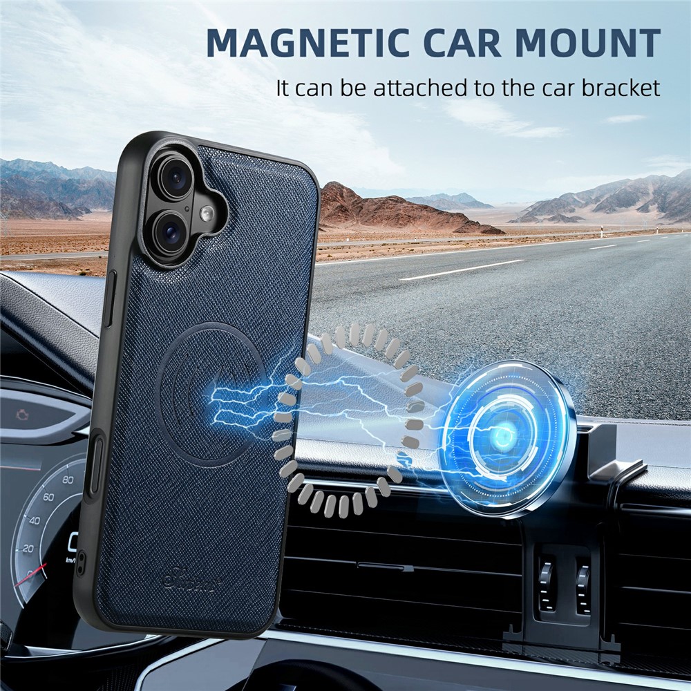 SUTENI H20 For iPhone 16 Plus Magnetic Case Cross Texture Phone Back Cover with Detachable Card Holder – Blue