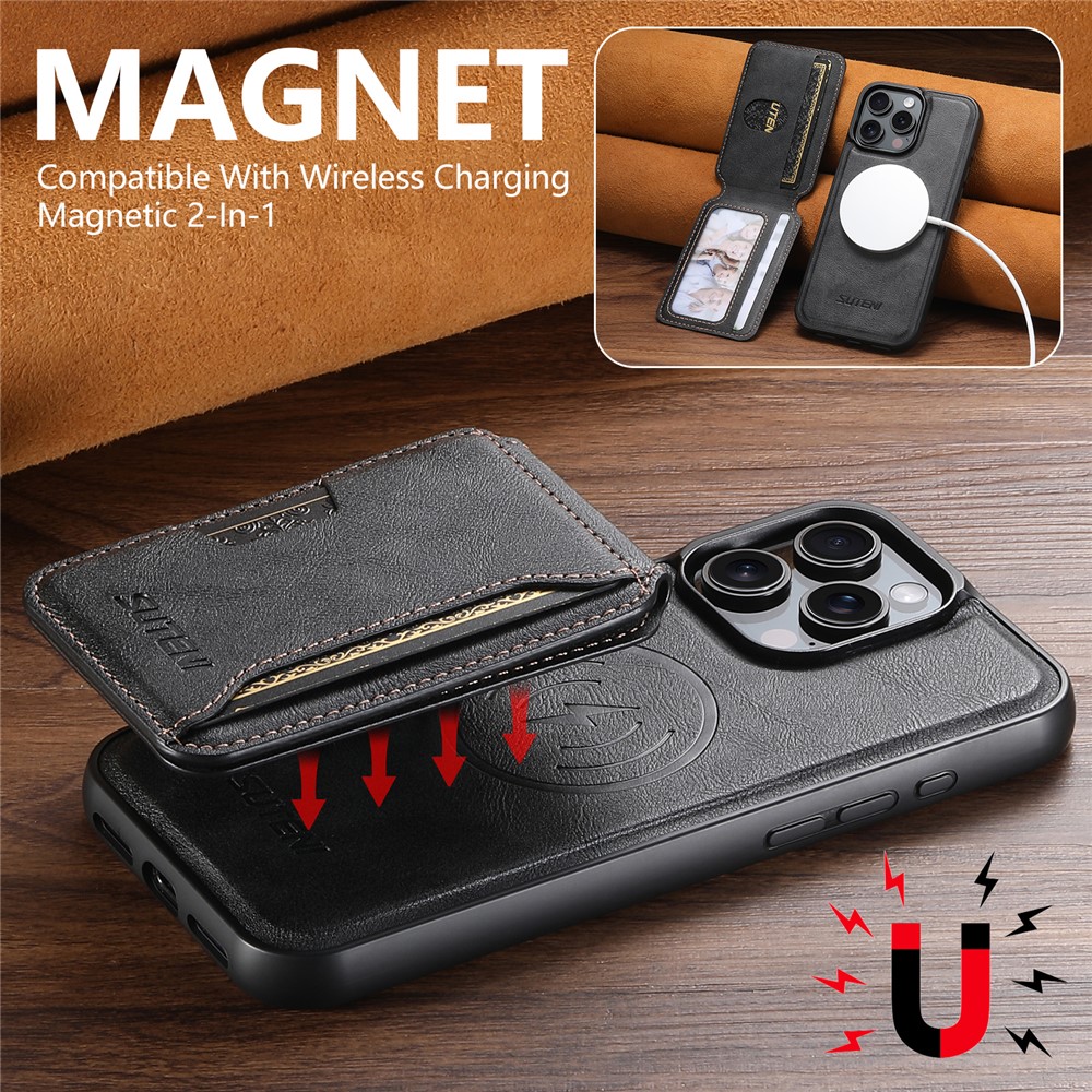 - Detachable 2-in-1 Magnetic Design Ultra-thin case and card bag seamlessly snap together via powerful magnets, offering flexibility for minimalist or card-carrying needs