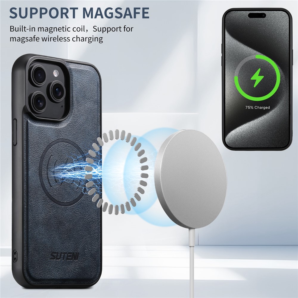 • SUTENI Q-05 For iPhone 13 Pro Wallet Case 2 in 1 Detachable Leather Flip Phone Cover with Stand - Black