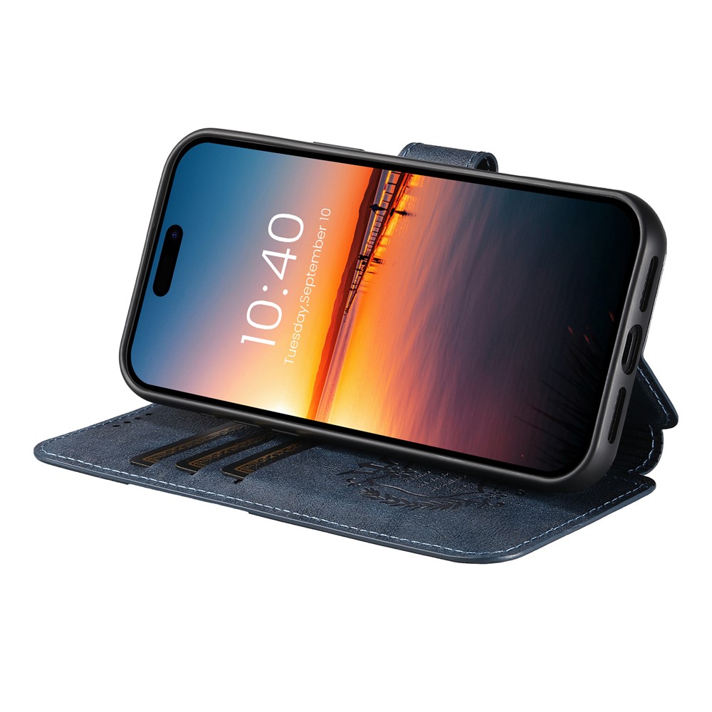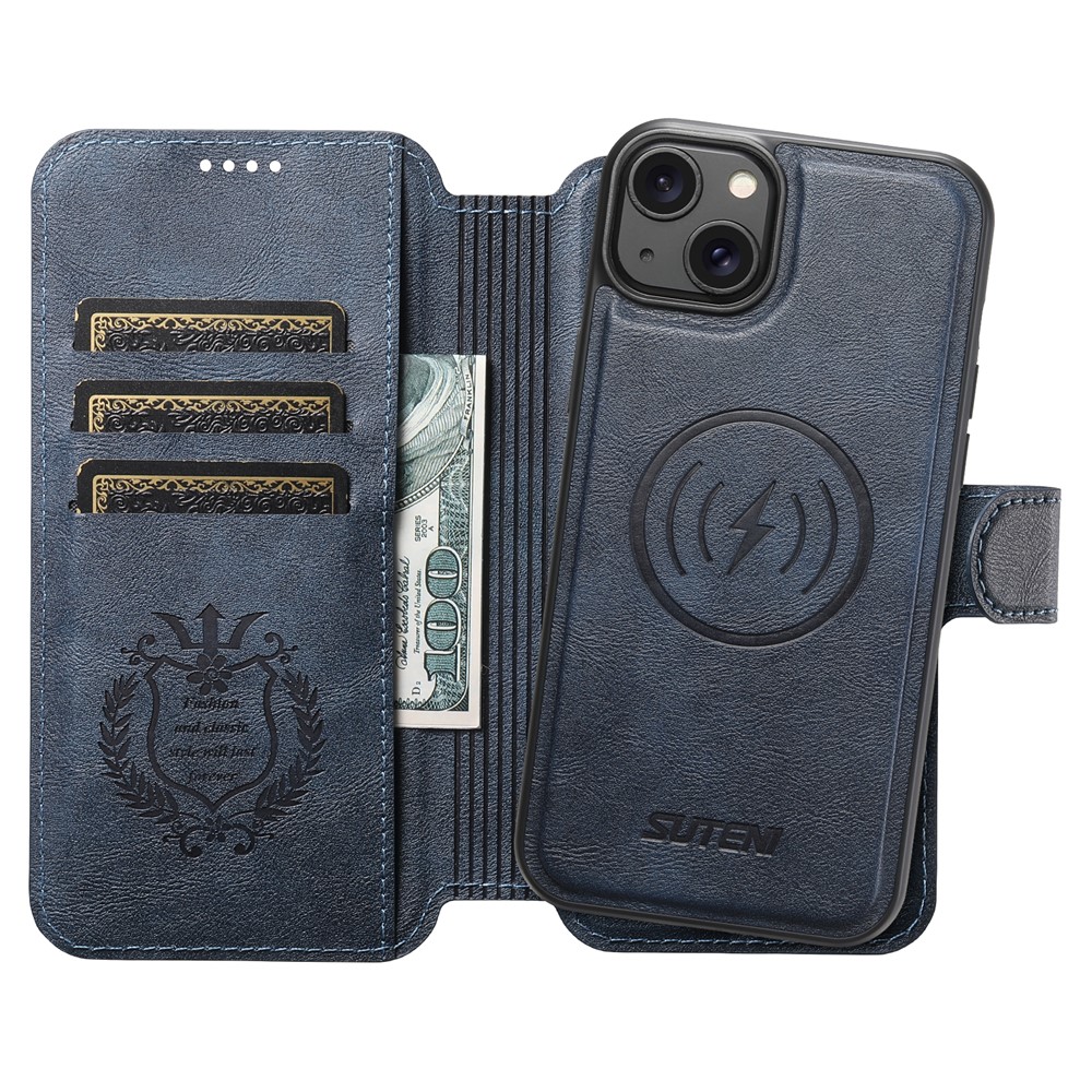 SUTENI Q-05 For iPhone 14 / 13 Wallet Case 2 in 1 Detachable Leather Flip Phone Cover with Stand - Blue