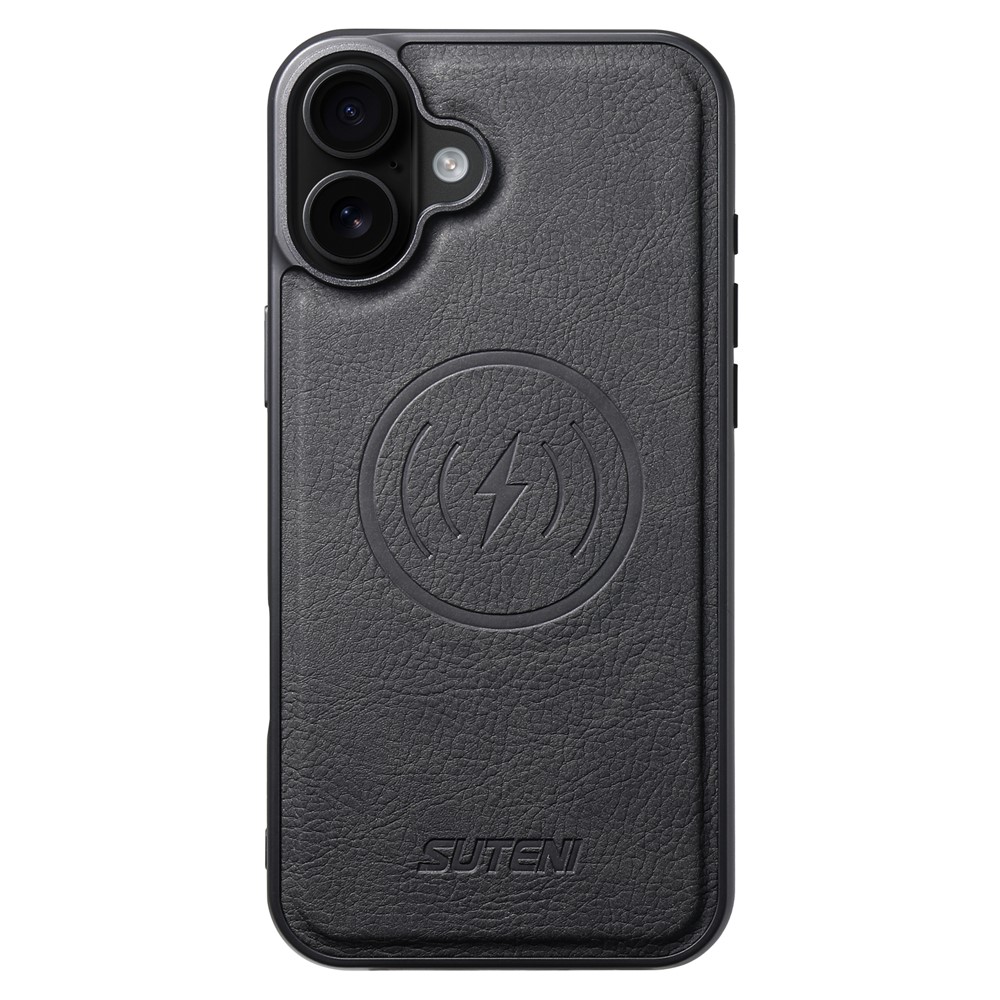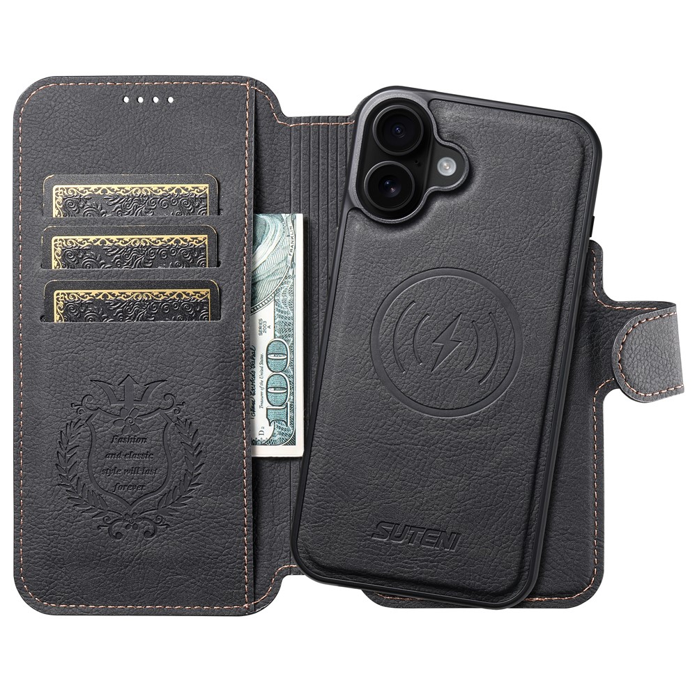 SUTENI Q-05 For iPhone 16 Plus Case Detachable Wallet Stand Litchi Texture Leather Flip Phone Cover – Black