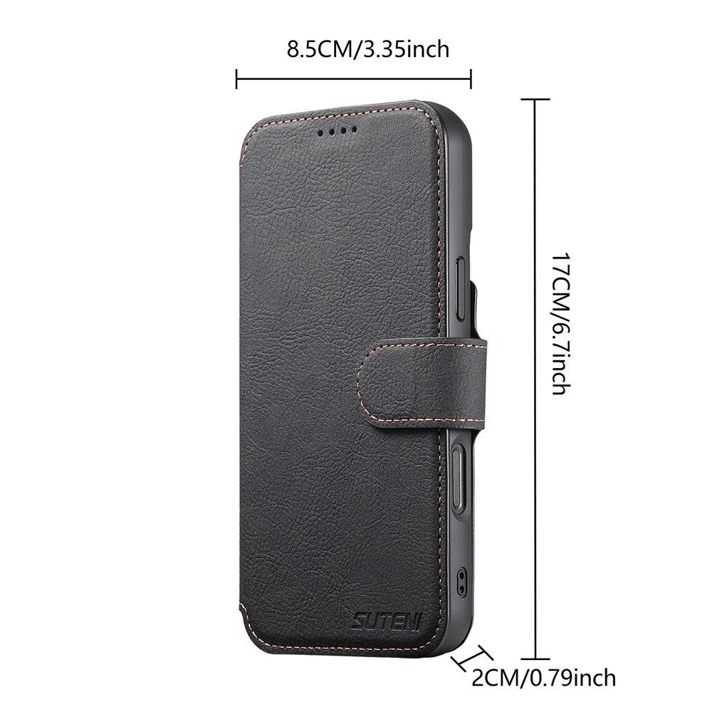 SUTENI Q-05 For iPhone 16 Plus Case Detachable Wallet Stand Litchi Texture Leather Flip Phone Cover - Black $22.77