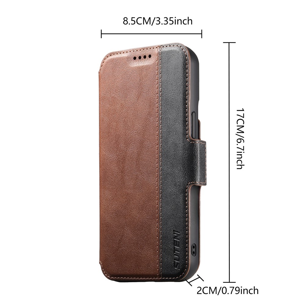 SUTENI Q-07 For iPhone 16 Pro Max Case Magnetic Color Splicing Cowhide Texture Leather Cover - Brown $23.42