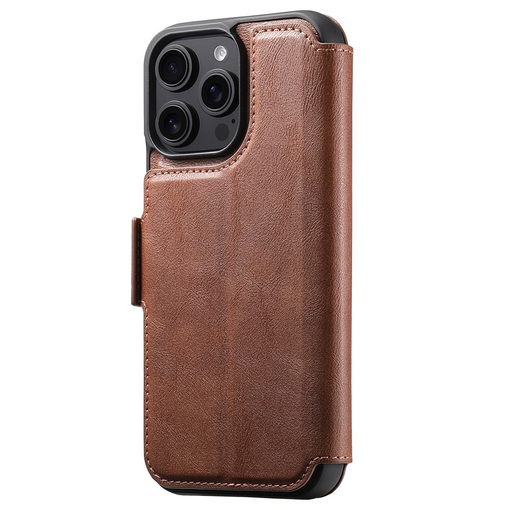 SUTENI Q-07 For iPhone 16 Pro Max Case Magnetic Color Splicing Cowhide Texture Leather Cover – Brown