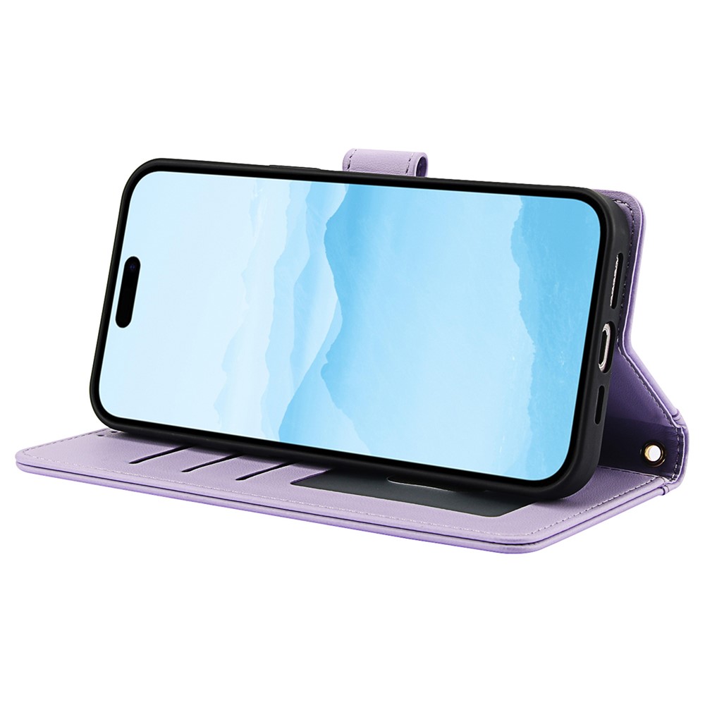SY-003 For iPhone 14 Pro Case PU Leather Stand View Phone Wallet Cover with Hand Strap - Purple $16.62