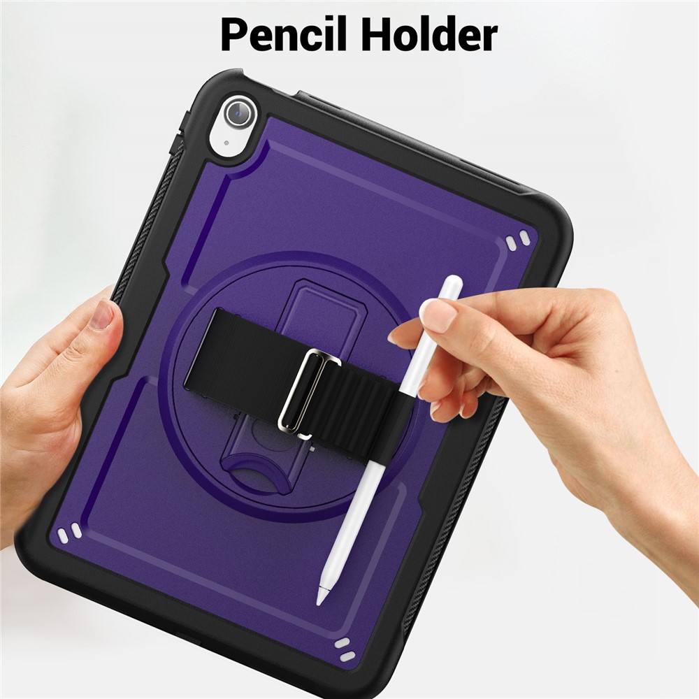 Tablet Case for iPad (2025) / 10.9 (2022) (A2696) Hand Strap Kickstand PC+TPU Cover Drop-Proof - Purple $27.08