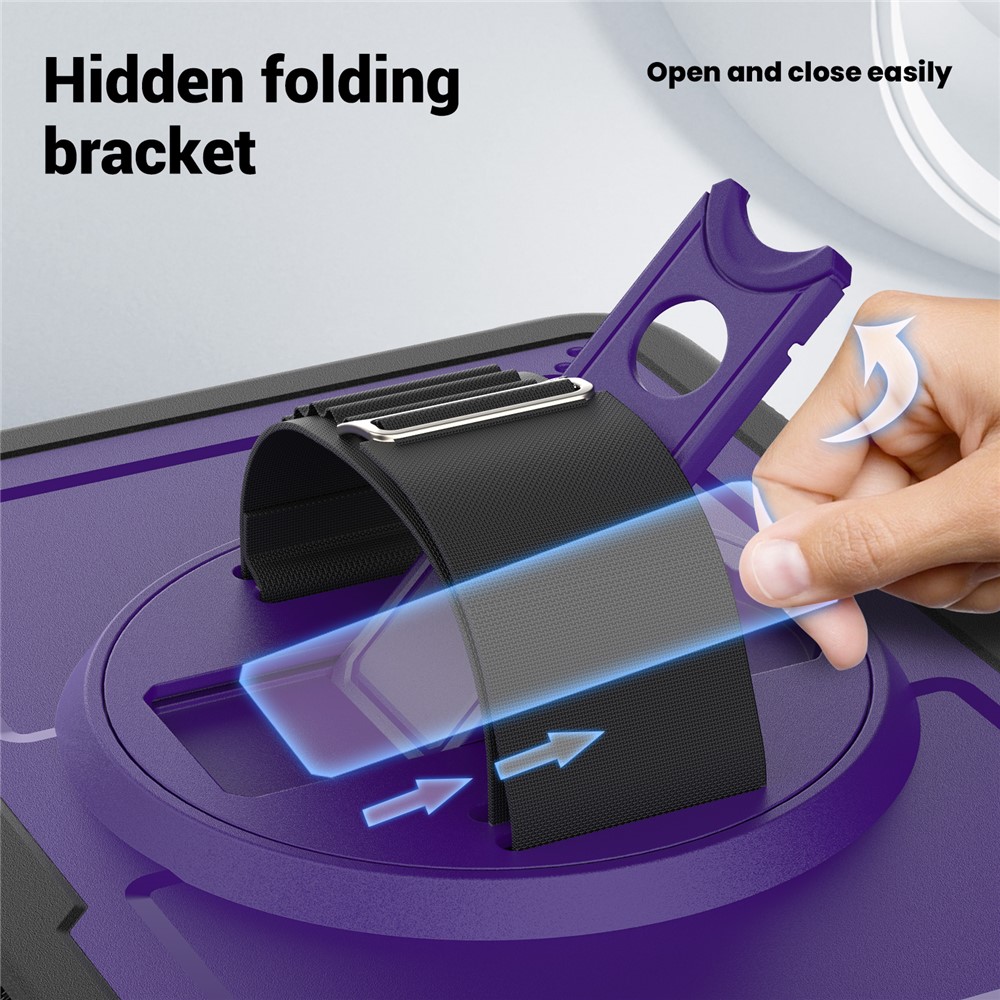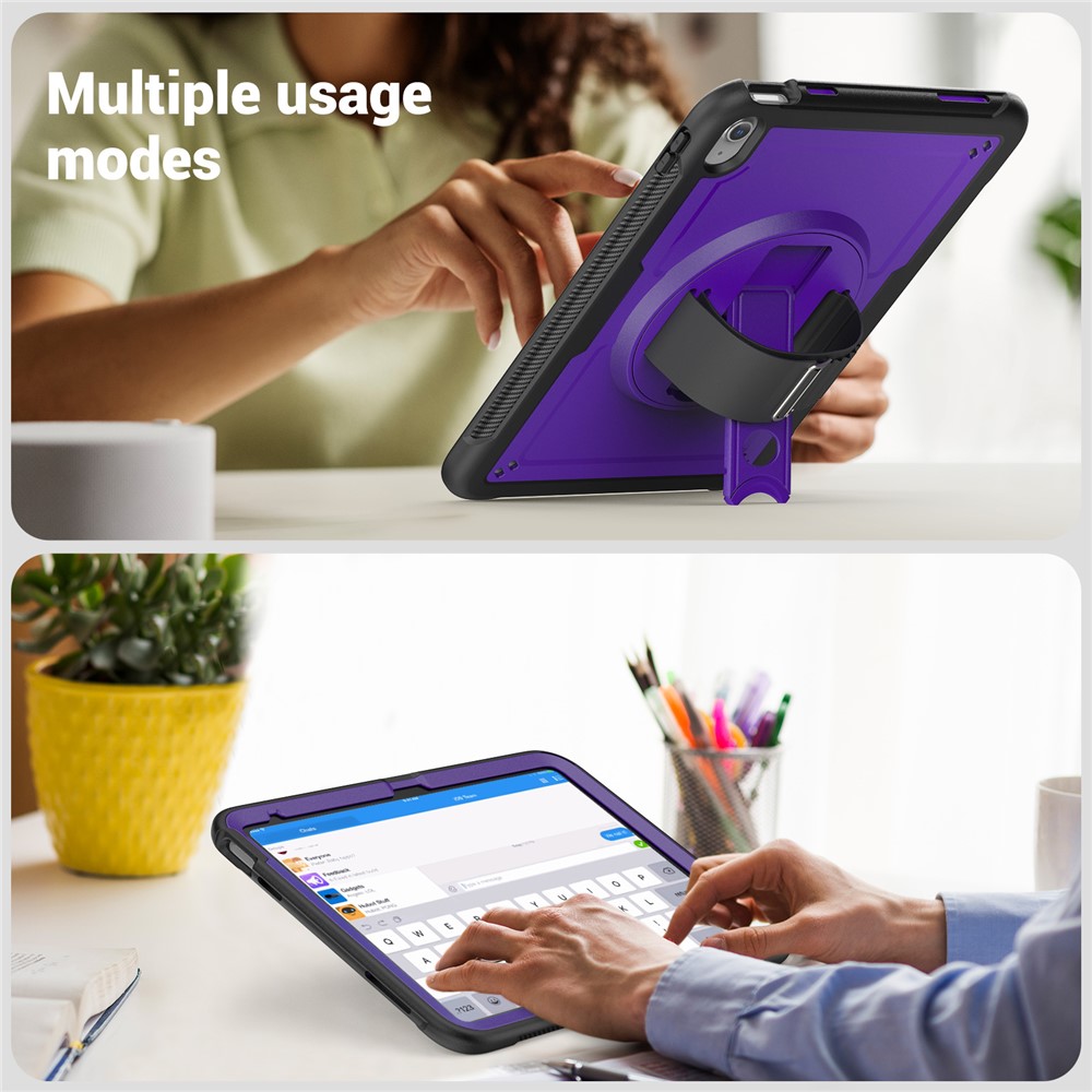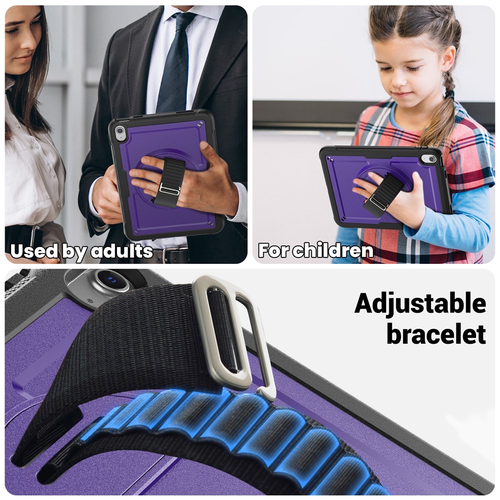 Tablet Case for iPad (2025) / 10.9 (2022) (A2696) Hand Strap Kickstand PC+TPU Cover Drop-Proof - Purple