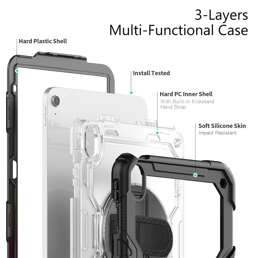 Tablet Case for iPad (2025) A3354 / iPad 10.9 (2022) A2696 PC + Silicone Cover with PET Film and Shoulder Strap