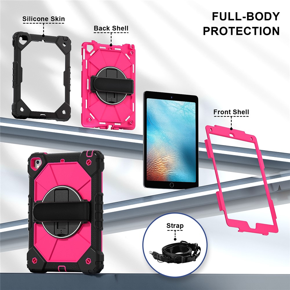 - Folding Kickstand & Hand Strap Features an integrated folding kickstand, allowing hands-free viewing; There is a handy strap on the back of the case, supporting 360-degree rotating, and you can hold your tablet in one hand
