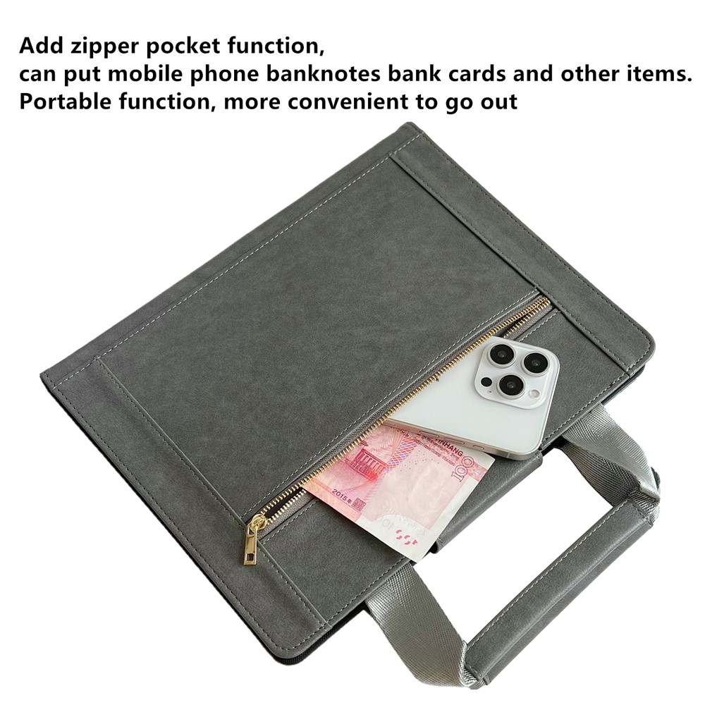- Zipper Pouch for Storage Includes a secure zipper pouch to hold cables, pens, or small accessories, keeping everything organized and within reach.