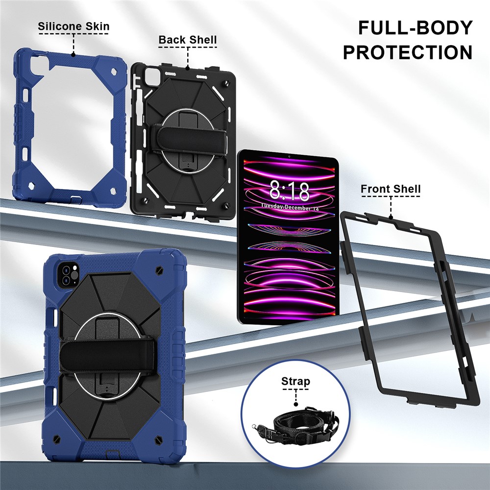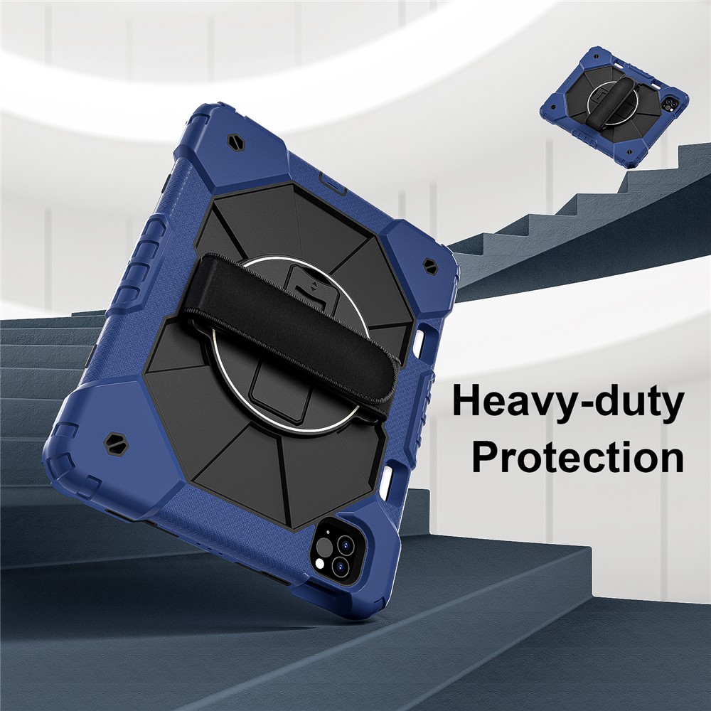 - Folding Kickstand & Hand Strap Features an integrated folding kickstand, allowing hands-free viewing; There is a handy strap on the back of the case, supporting 360-degree rotating, and you can hold your tablet in one hand