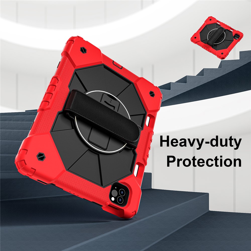 - Folding Kickstand & Hand Strap Features an integrated folding kickstand, allowing hands-free viewing; There is a handy strap on the back of the case, supporting 360-degree rotating, and you can hold your tablet in one hand