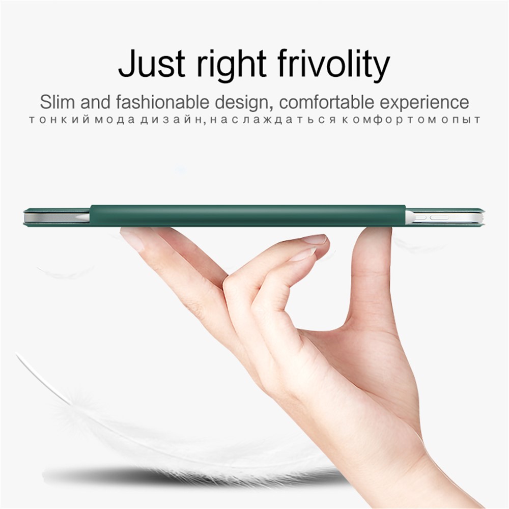 Stable tri-fold stand design with dual standing positions for users to adjust your device into different angles. Tri-fold front cover enables both viewing and typing stand modes