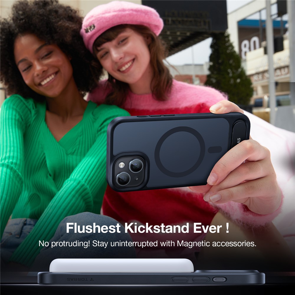 TORRAS Ostand L1 Series For iPhone 15 Case Kickstand TPU+PC Phone Cover Compatible with MagSafe – Black