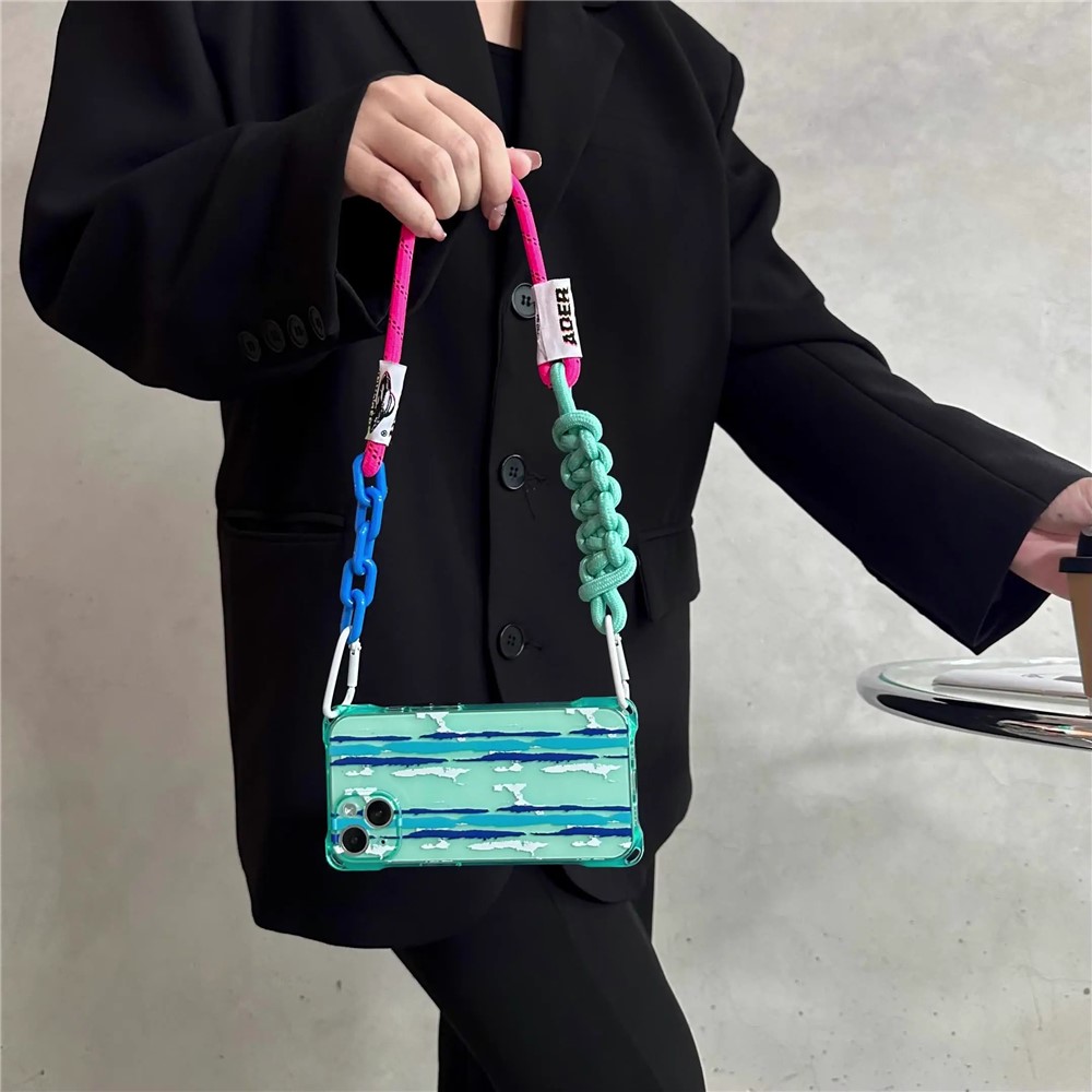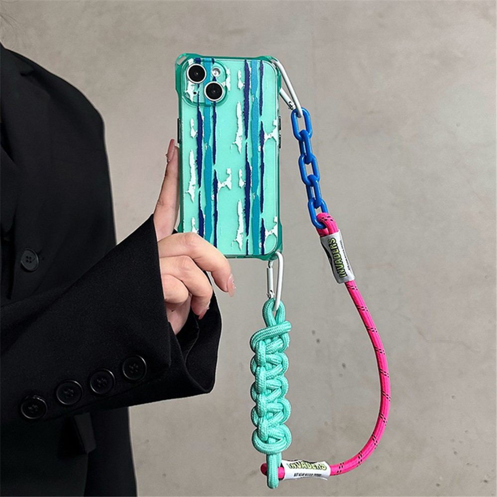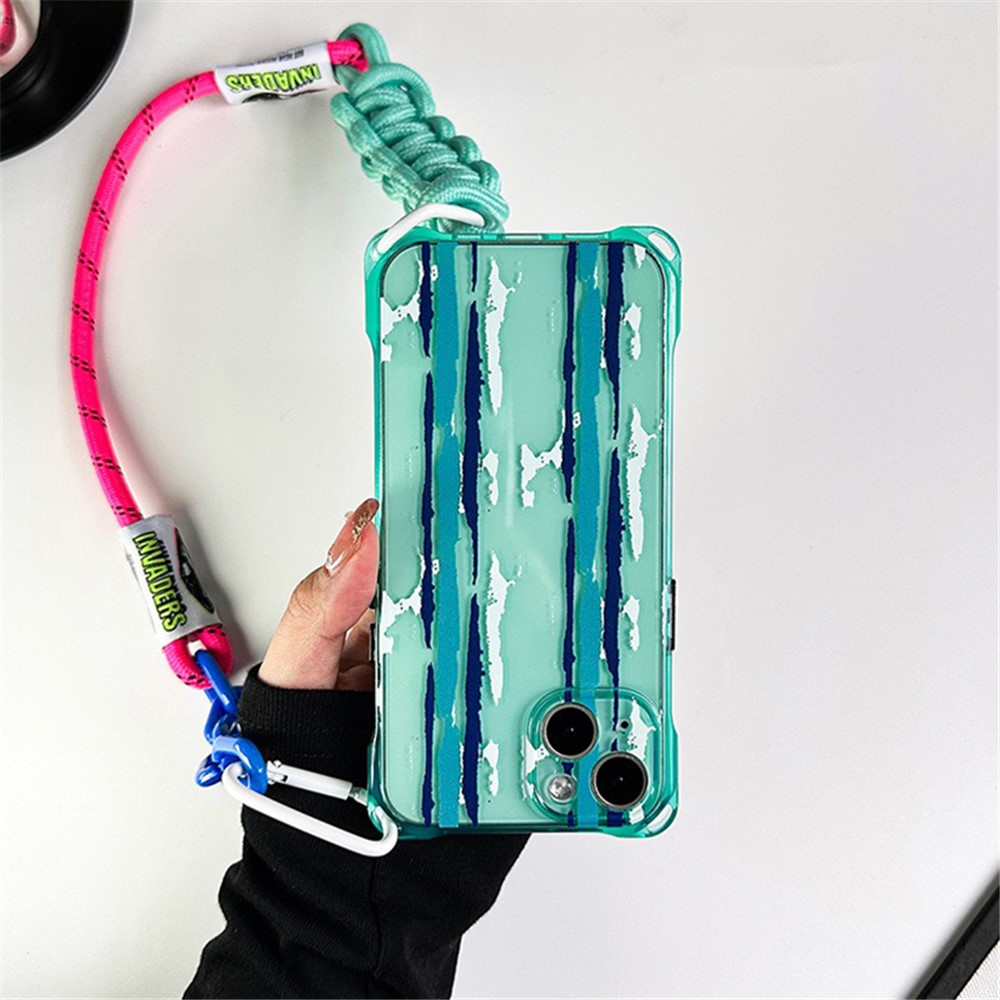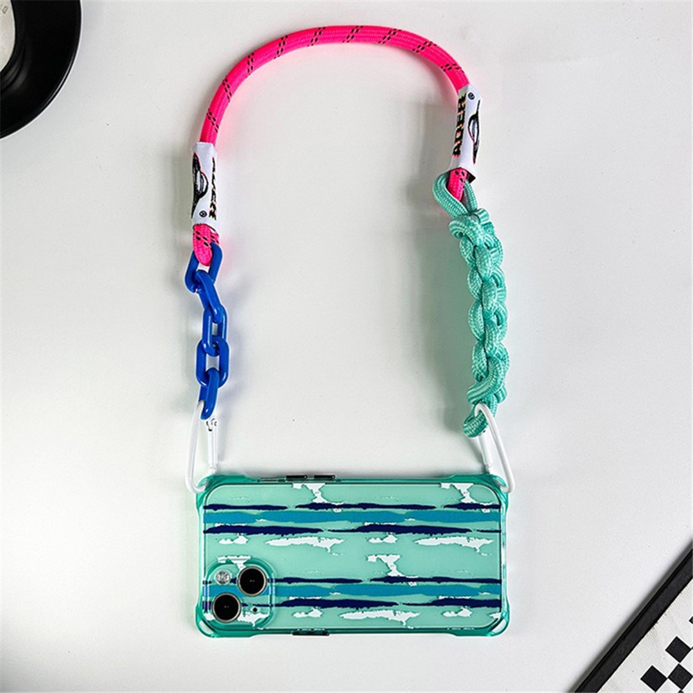 TPU Phone Cover for iPhone 14 Cases Pattern Design Cell Phone Shell with Carrying Strap