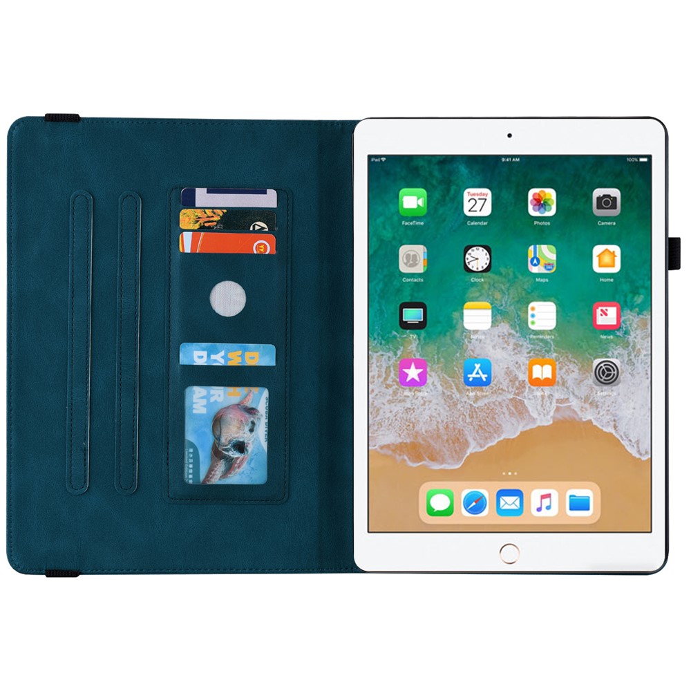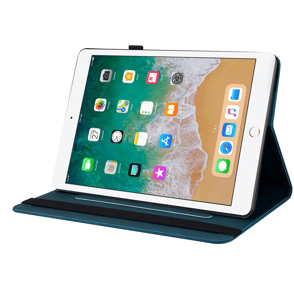 Viewing Stand Butterfly Flower Pattern Imprinting Leather Folio Cover with Elastic Band for iPad 9.7-inch (2018) / iPad 9.7-inch (2017) / iPad Air 2 (iPad 6) / iPad Air (iPad 5) – Blue