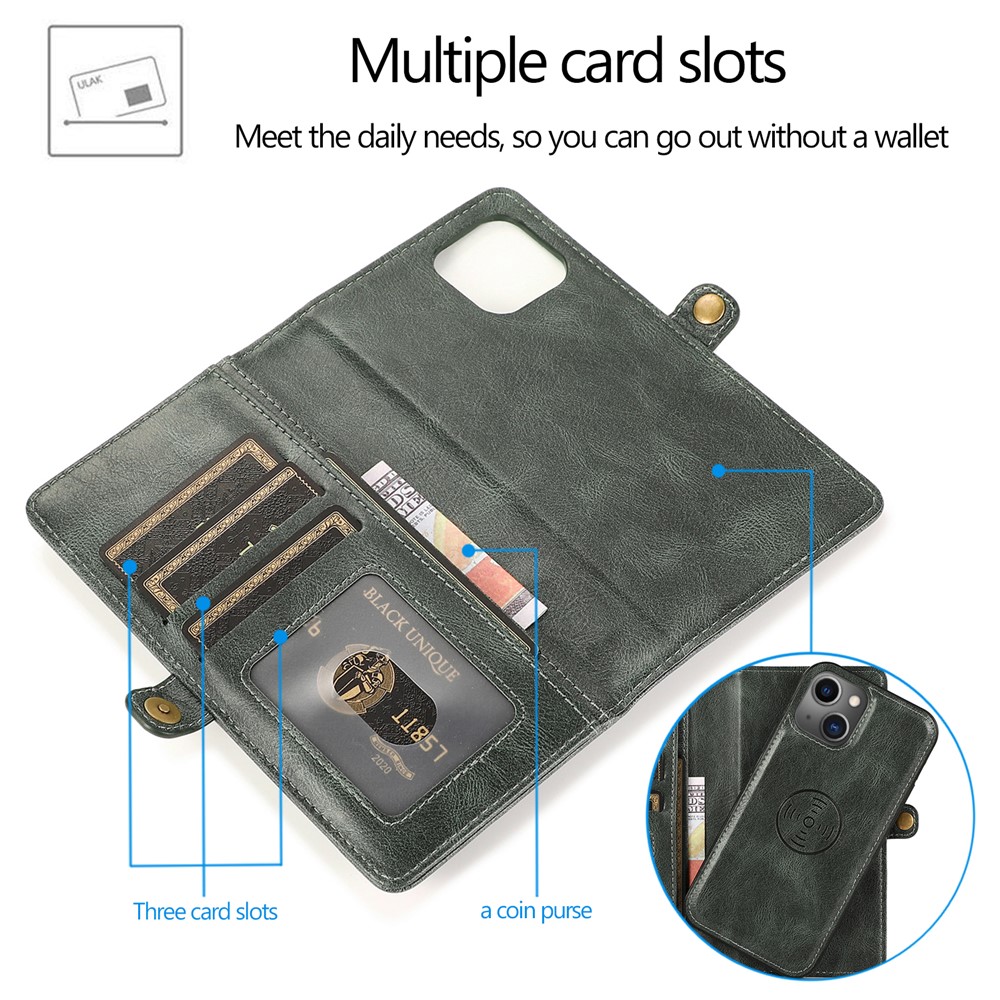 - Detachable 2-in-1 design. Retro PU leather wallet cover + TPU back case, absorbed by magnet