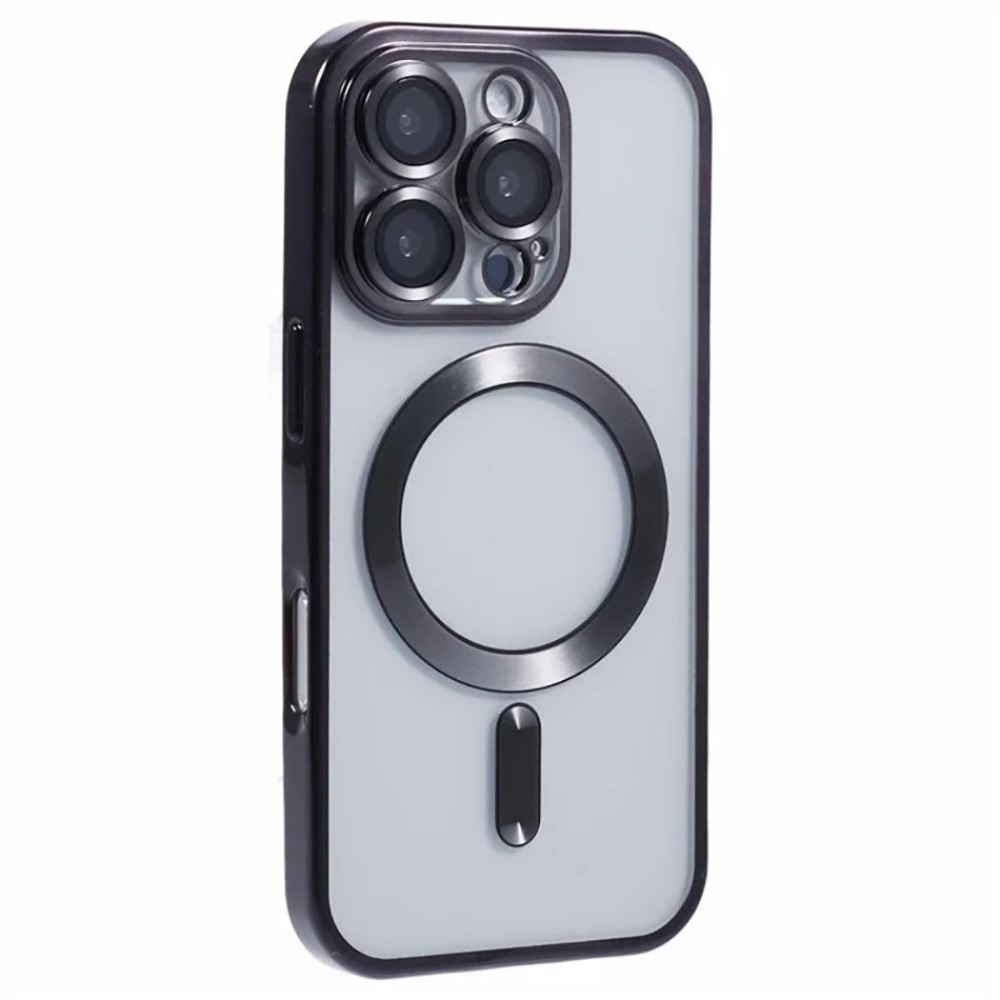 WANLONFENG For iPhone 16 Pro Max Magnetic Case Full Protection Electroplated TPU Cover with Tempered Glass – Black