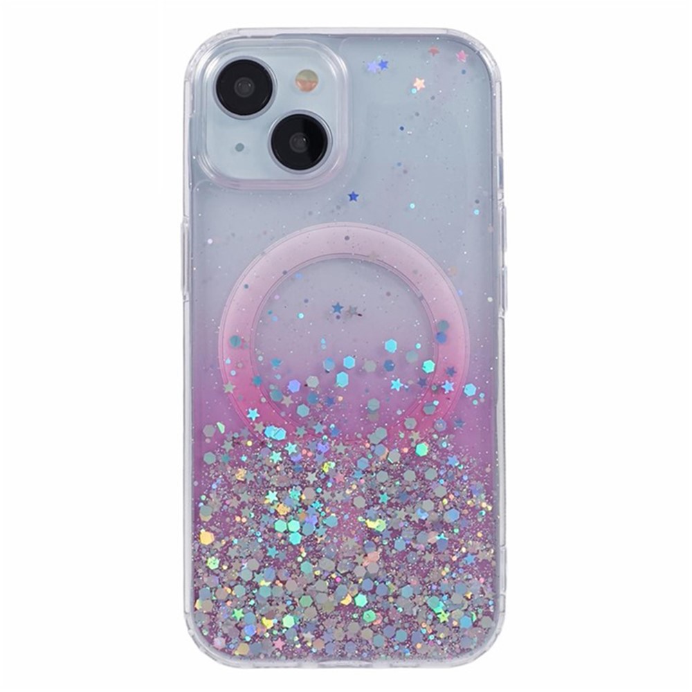 WANLONFENG JWT Series For iPhone 13 Glitter Sequin TPU+Acrylic Magnetic Phone Case with Screen Film + Lens Film – Pink