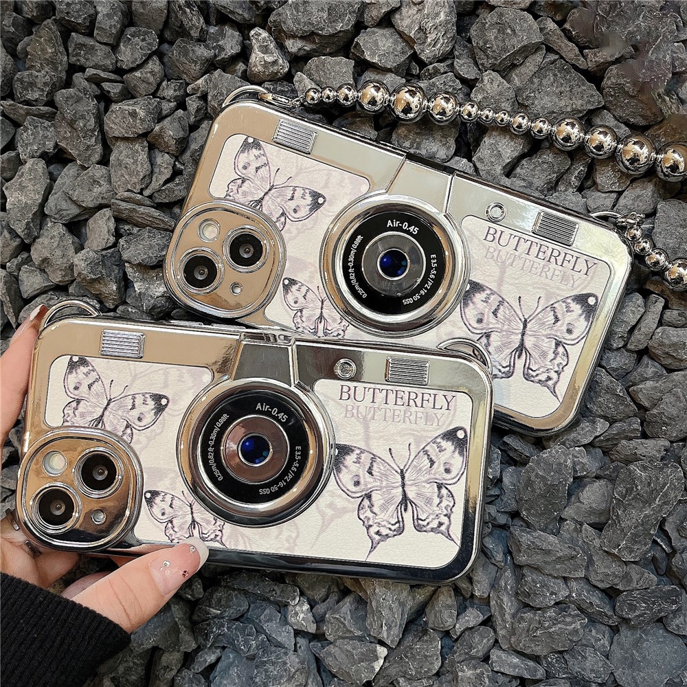 Wholesale Phone Cases for iPhone 13 Electroplating Camera Shaped TPU Phone Cover with Chain