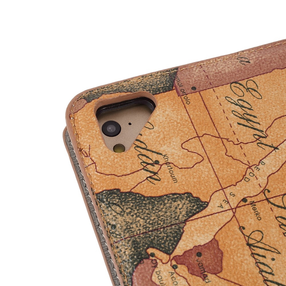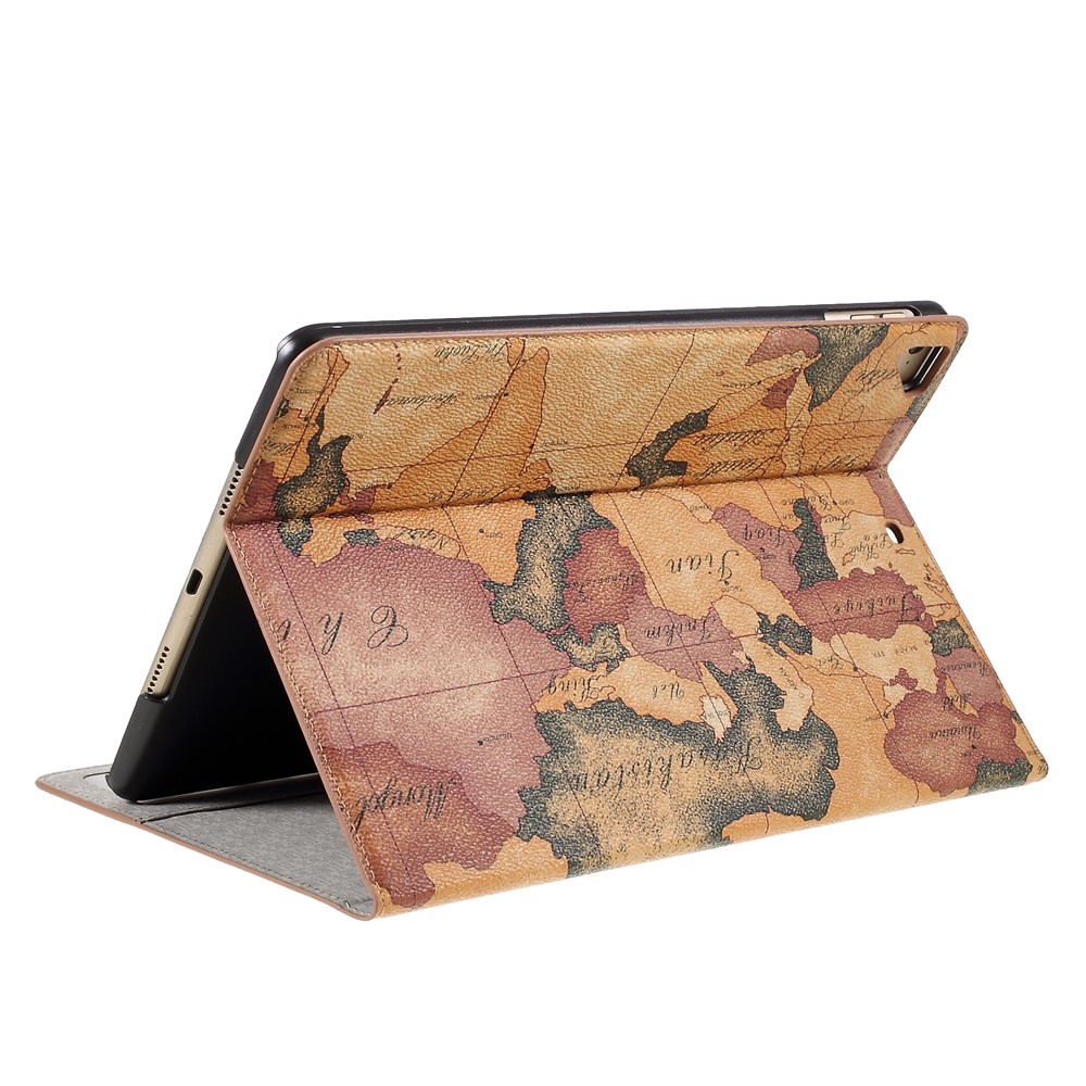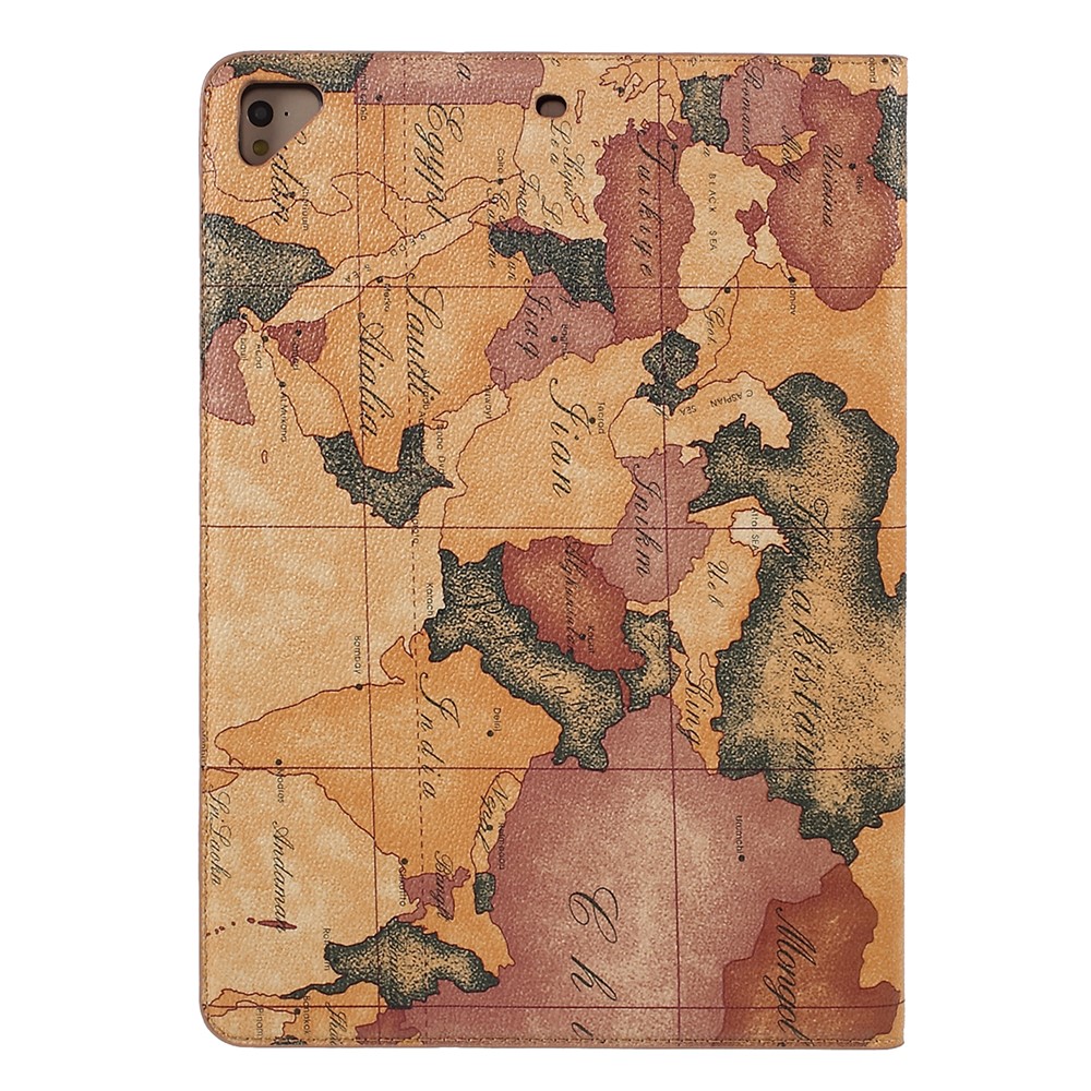 1 x World Map Pattern Wallet Leather Stand Shell for iPad Air/Air 2/9.7 (2018) (2017)- Brown