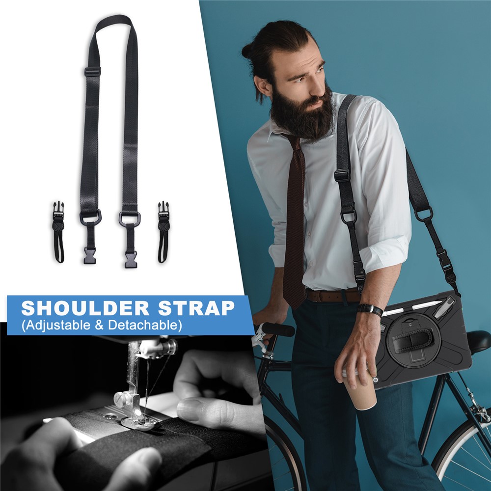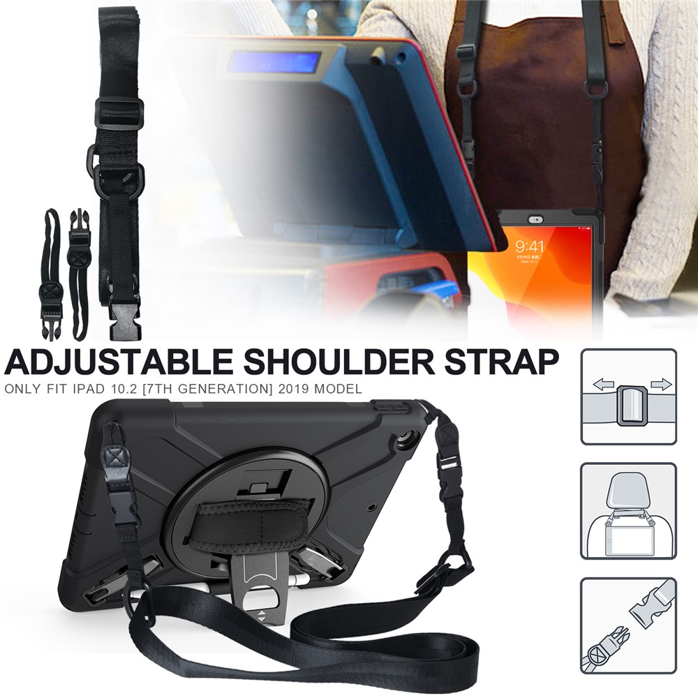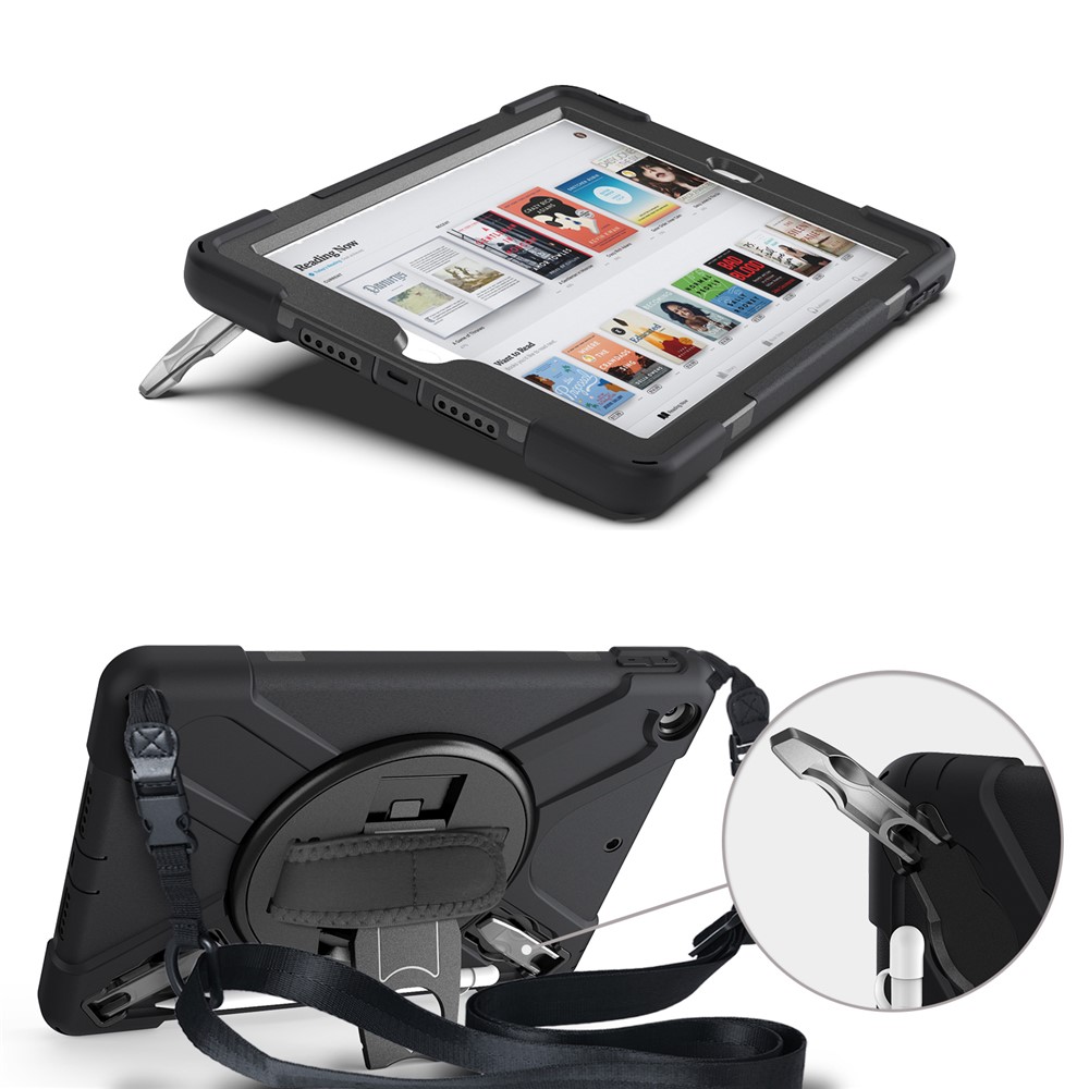X-Shape PC + TPU Hybrid Case / Two Types Kickstand / Hand Strap and Shoulder Strap / Pen Slot for iPad 10.2 (2021)/(2020)/(2019) – Black