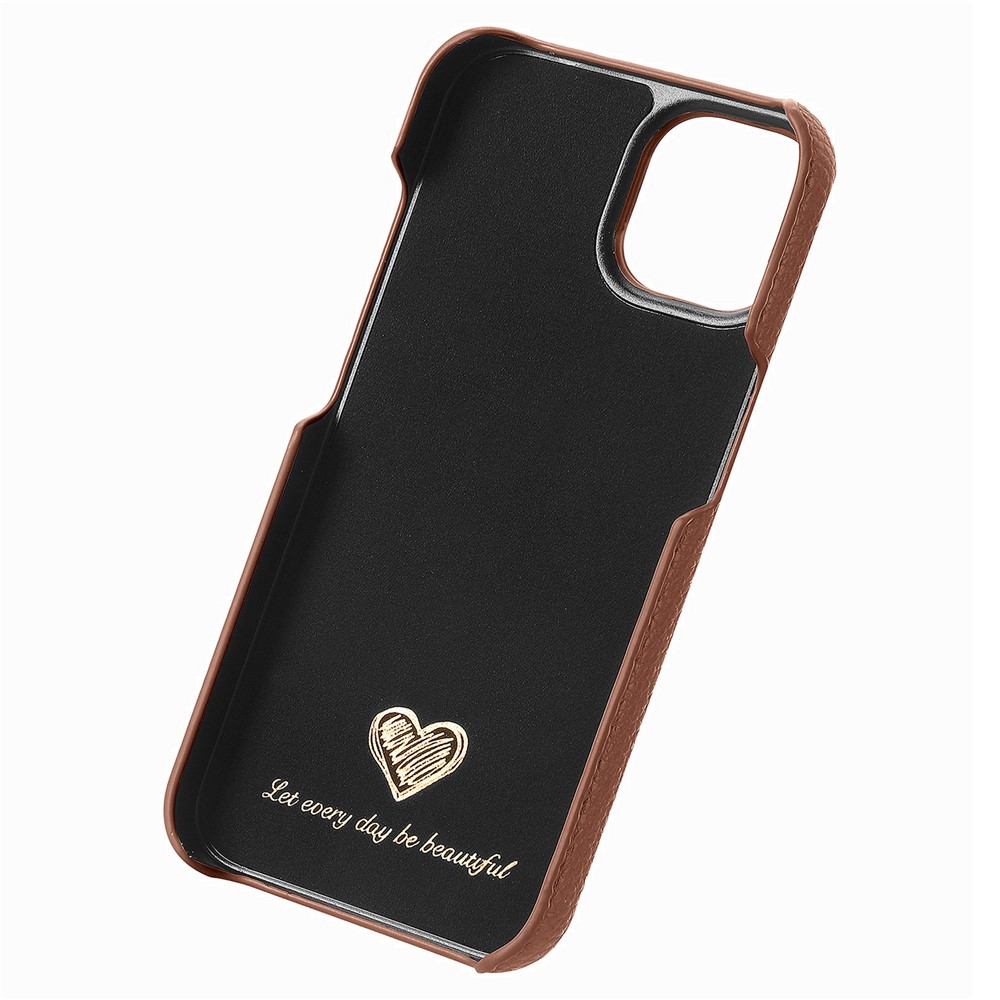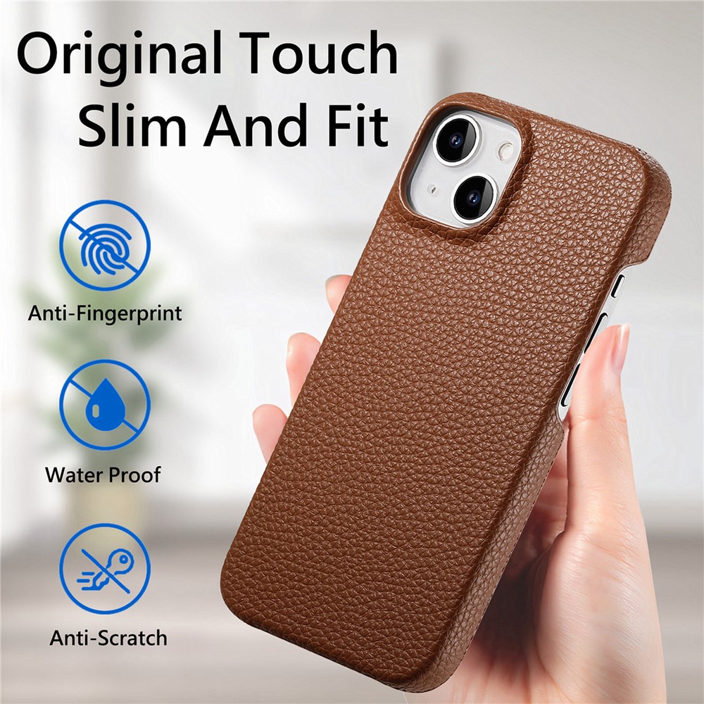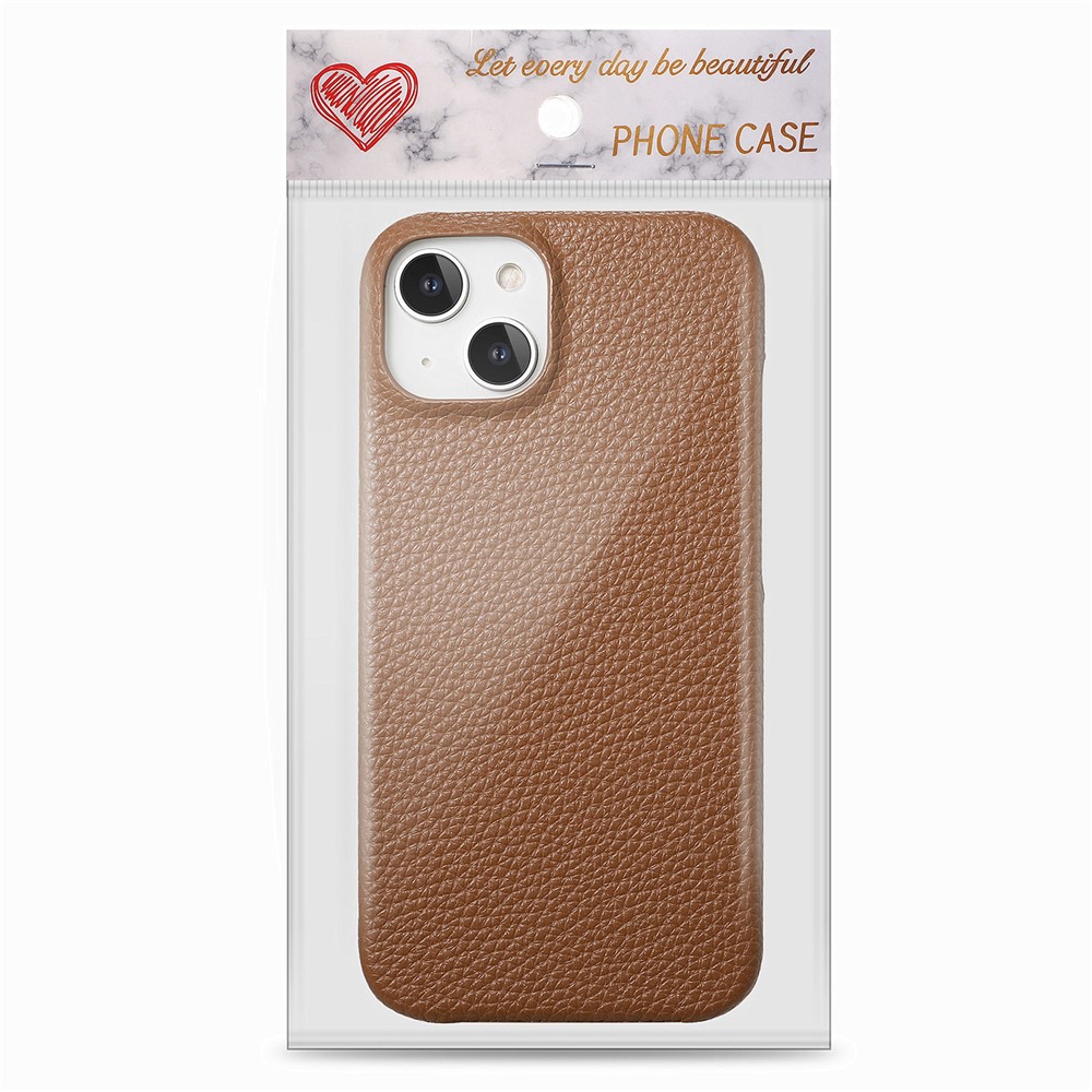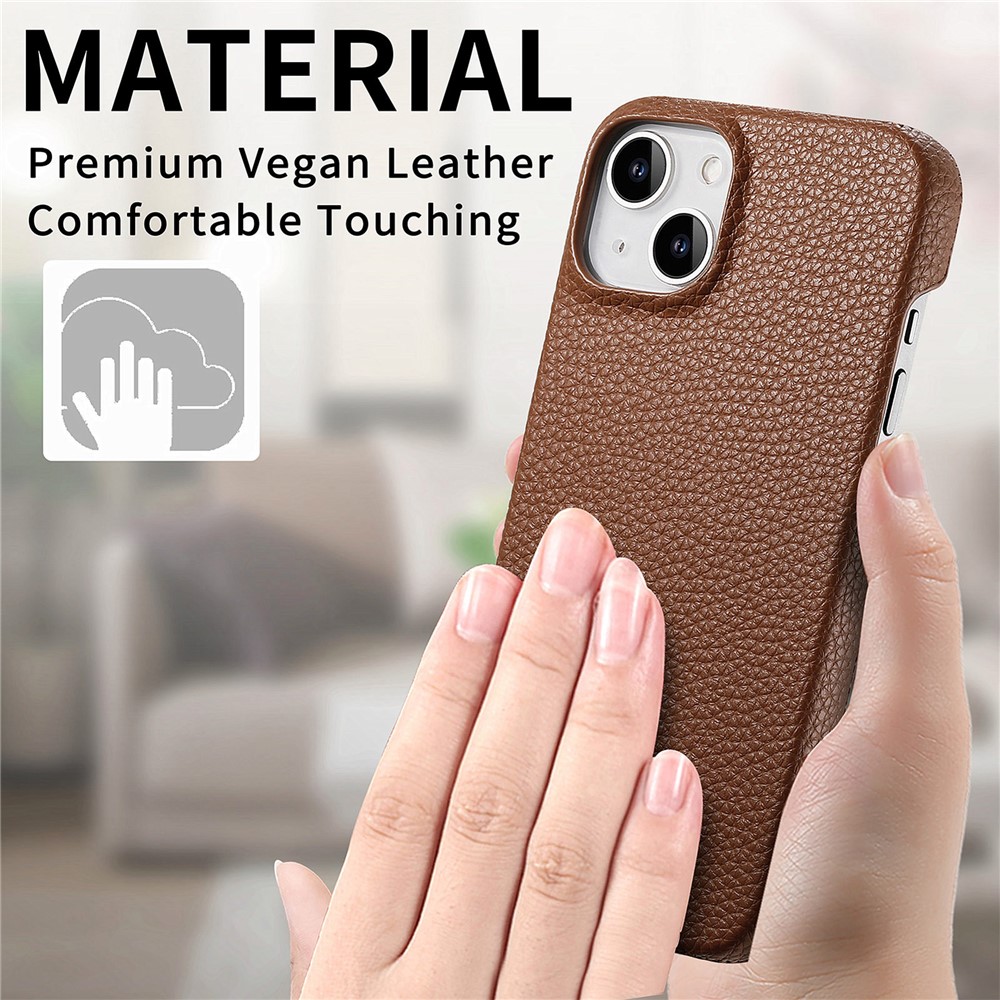 Y1 For iPhone 14 Plus Case Anti-scratch Litchi Texture PU Leather Coated PC Phone Cover – Brown
