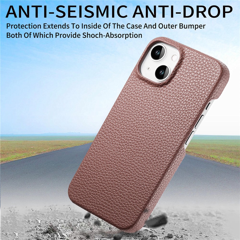 Y1 For iPhone 14 Plus Case Anti-scratch Litchi Texture PU Leather Coated PC Phone Cover – Jujube Apricot