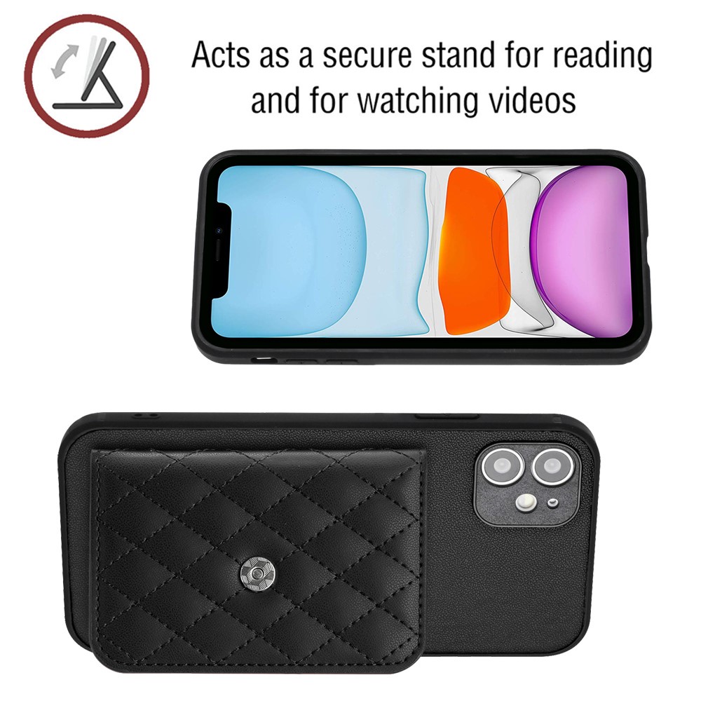 - The card holder can act as a kickstand to support the phone for hands-free watching