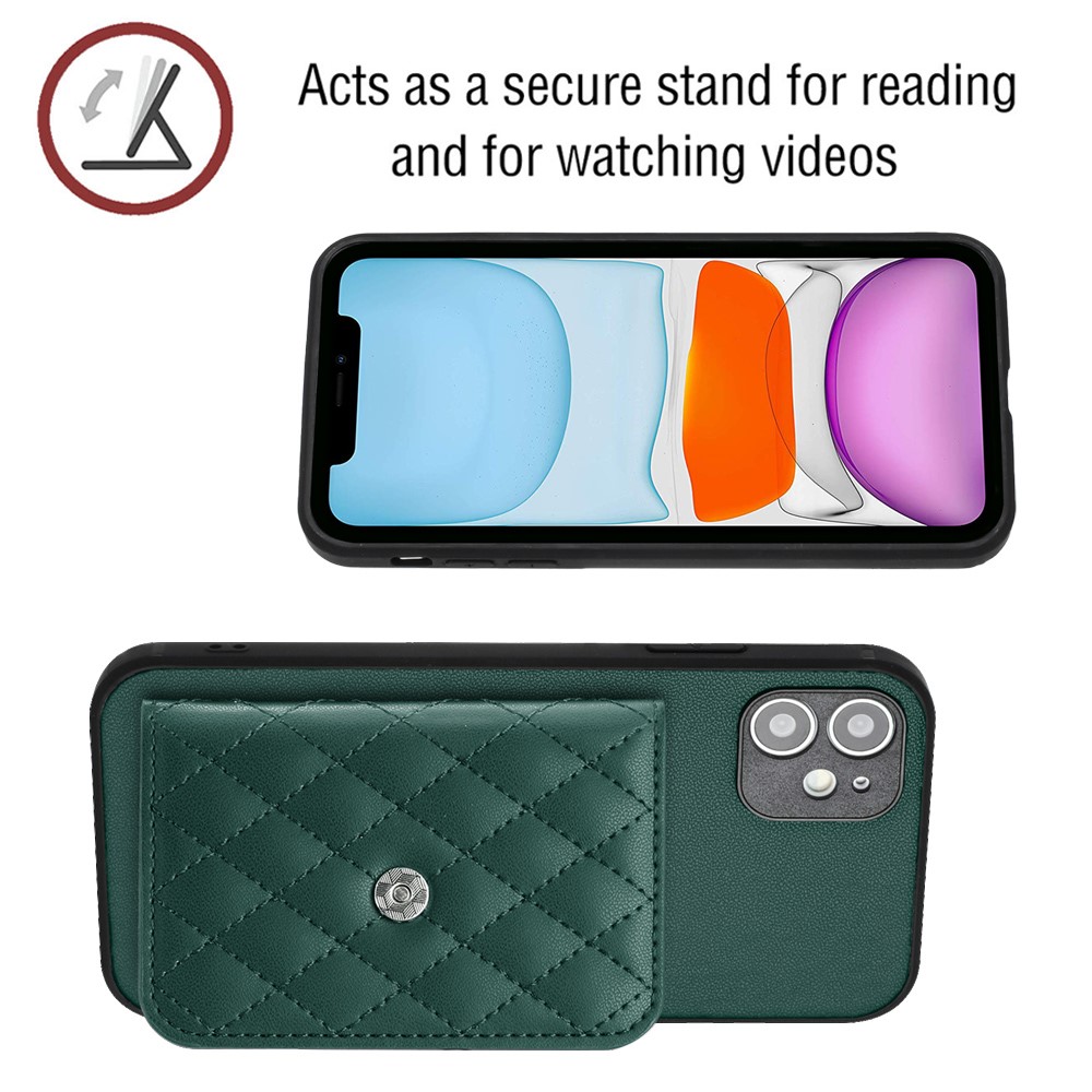 - The card holder can act as a kickstand to support the phone for hands-free watching