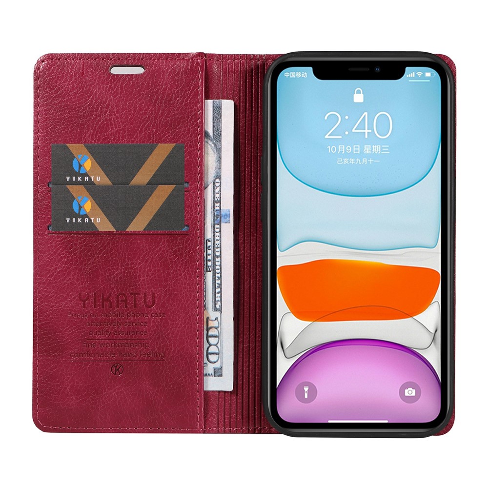 YIKATU YK-006 For iPhone 11 Case Wallet Card Slots PU Leather Protective Phone Cover - Wine Red $16.87
