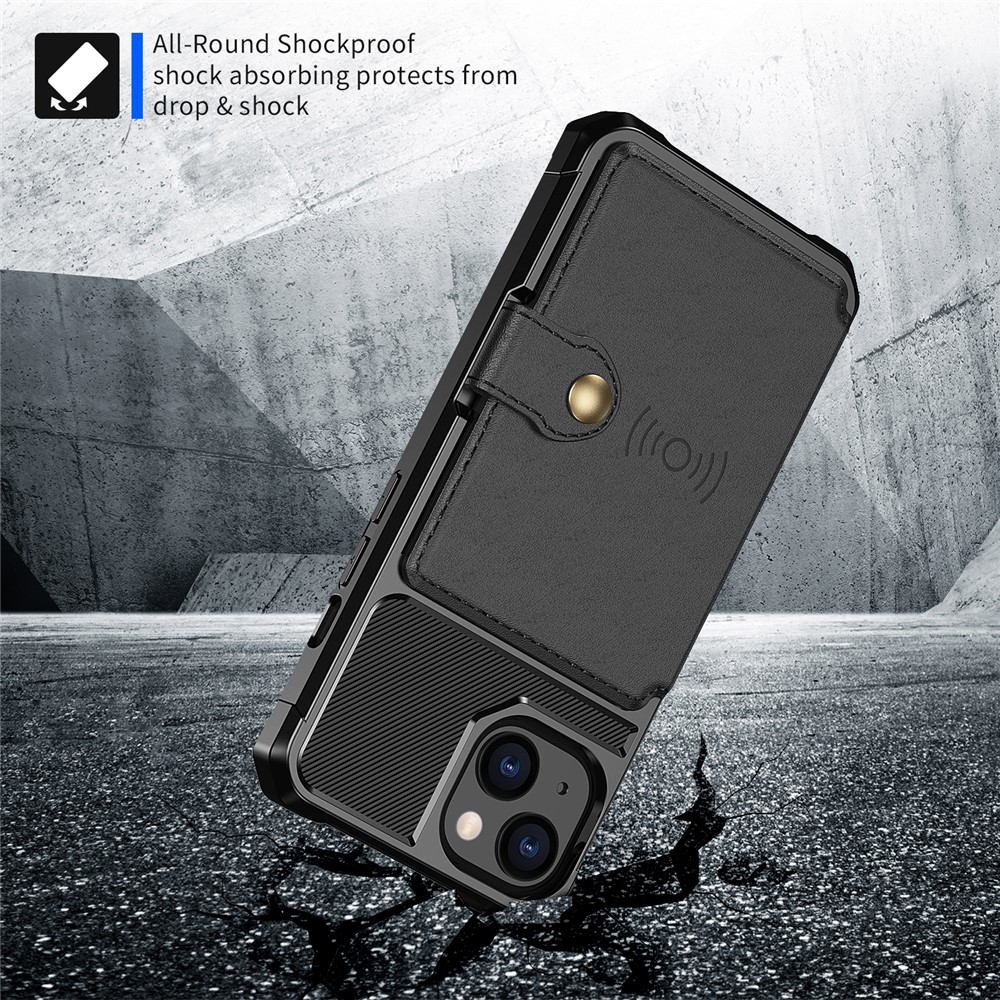 ZM03 Magnetic Metal Sheet Design Drop-Resistant TPU Phone Case with PU Leather Wallet for iPhone 13 mini 5.4 inch – Black