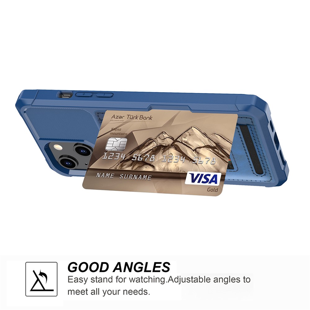 Card slots on the back, can place 3 cards (ID, bank cards or license) or simply place 5 cards and some folded cash