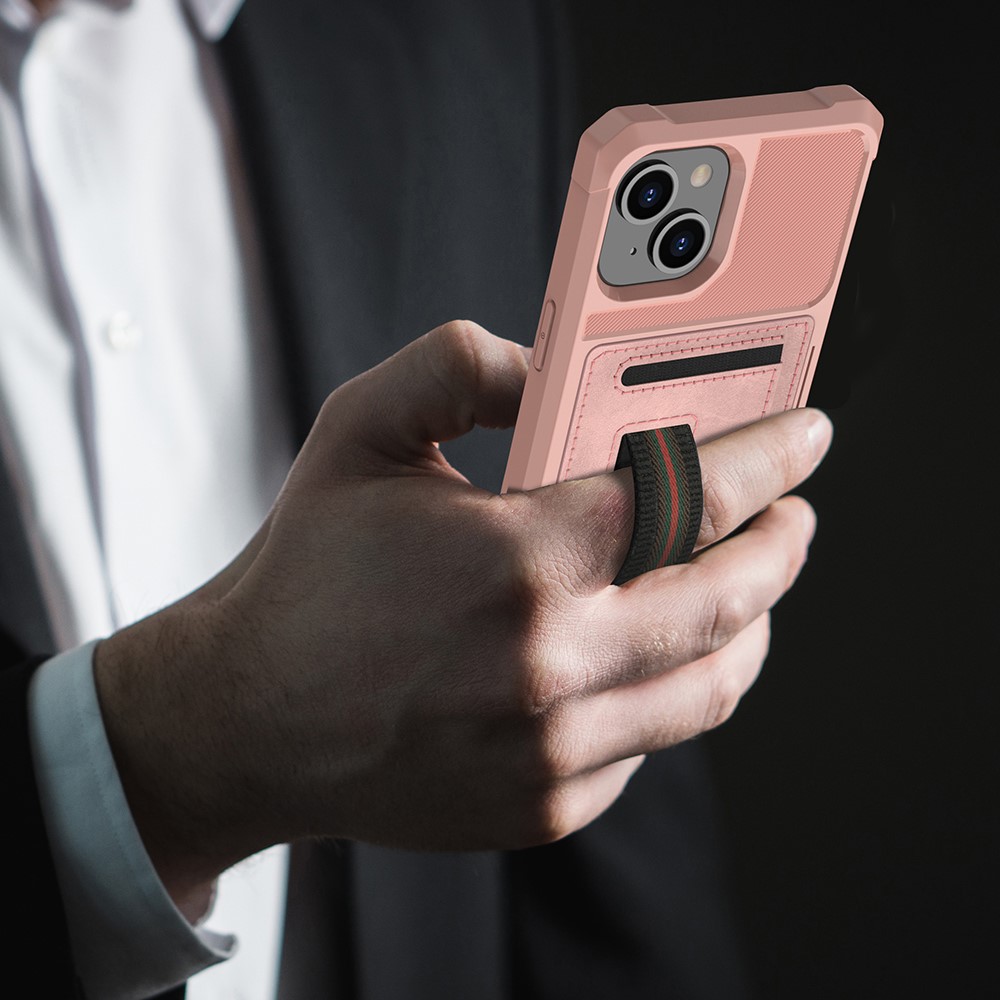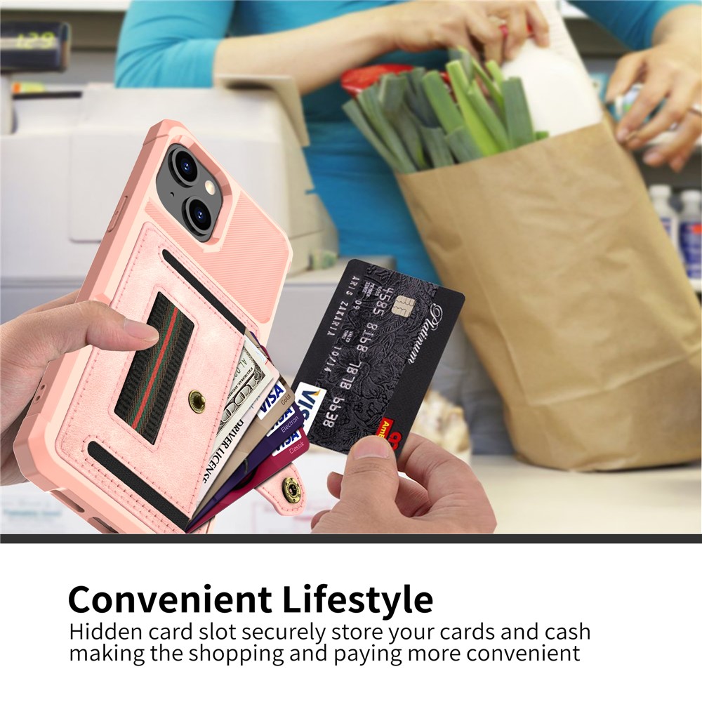 Card slots on the back, can place 3 cards (ID, bank cards or license) or simply place 5 cards and some folded cash